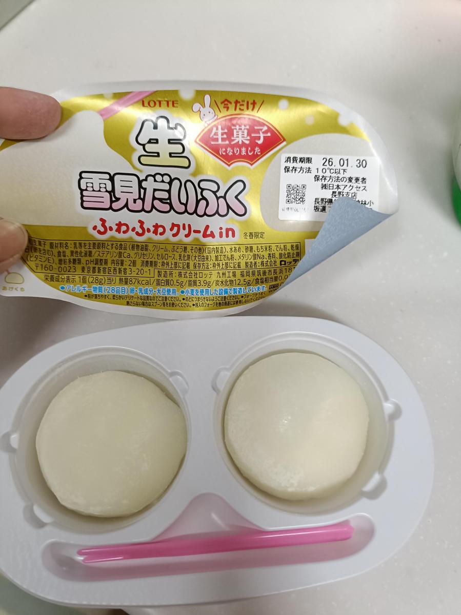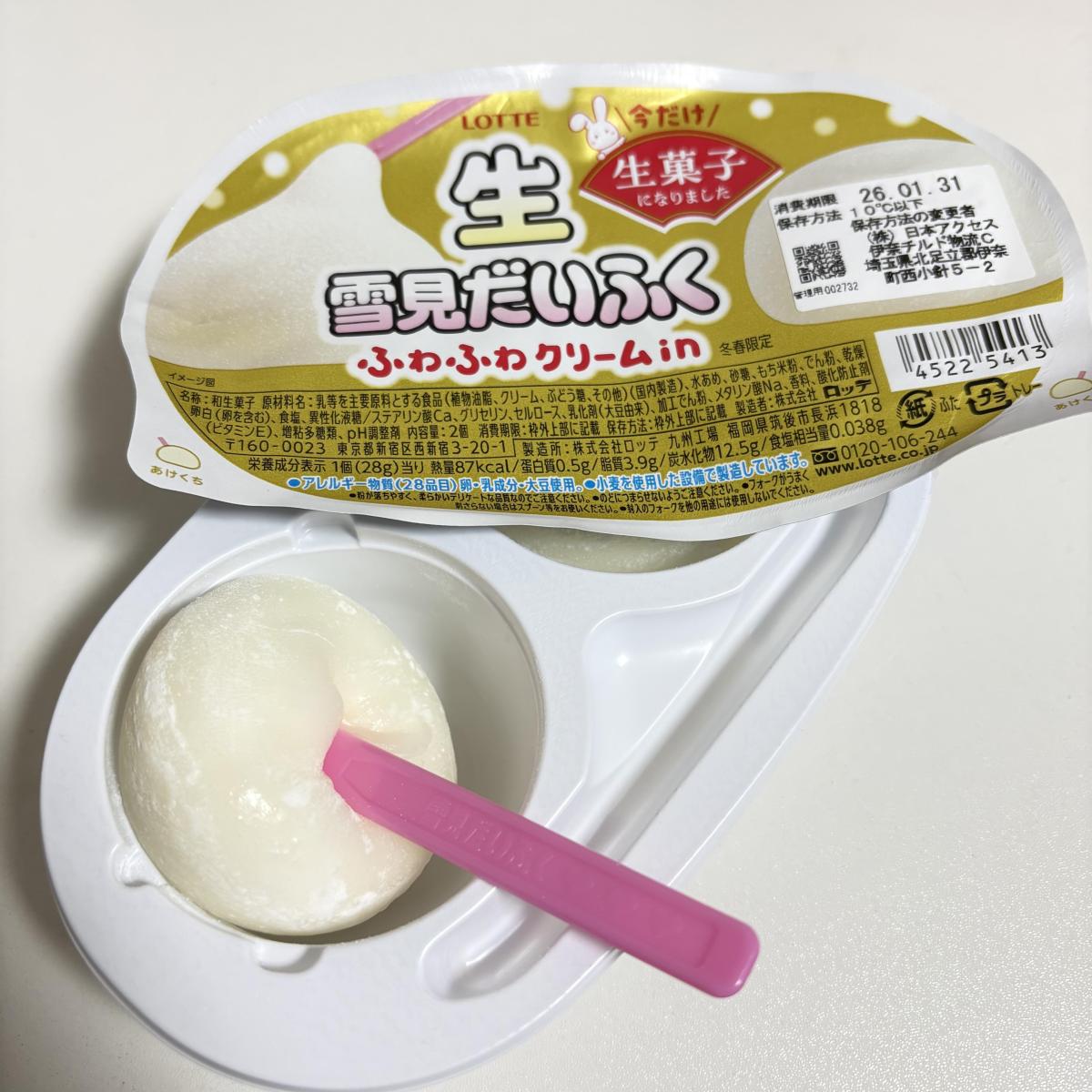 大々的にスーパーで売られていました。アイスコーナーではなく、チルドコーナーにあったので最初は???でしたが、商品説明を見て、生菓子なんだ!!とついつい買ってしまいました。「生」と付くだけあってふわっとした食感が楽しめます。最初は溶けただけの雪見だいふくと変わらないような気もしましたが、中がバニラアイスではなく、ふわふわクリームなので雪見だいふくとは違ったもちふわ感でした。いつもと違った雪見だいふくを楽しみたい時におすすめです!!