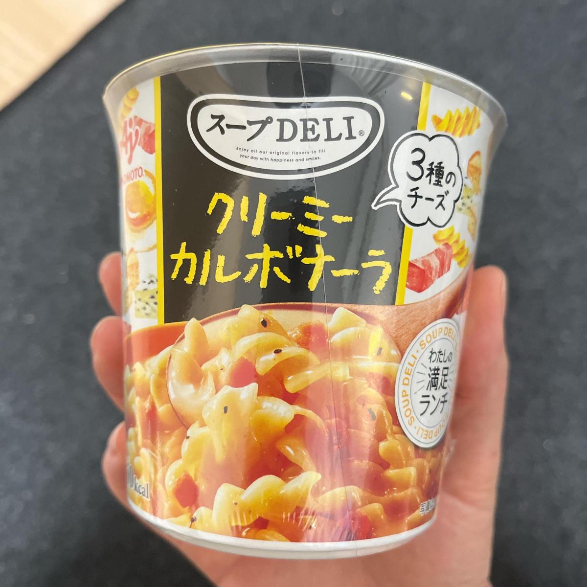 スープDELIクリーム系のテイストは多いけど今までありそうでなかったカルボナーラがいつの間にやら店頭に並んでいました。私の好み直球ストレートであろうと直感。