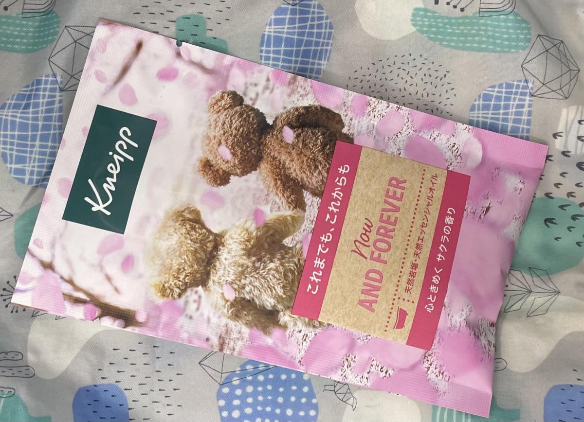大好きなクナイプの商品!パッケージからもう可愛すぎて癒やされます。桜ということでお色は薄ピンク色、とても可愛らいです。また溶かしていくと徐々に桜のいい香りが広がり本当にリラックスできました。だいぶ早い春の訪れを感じれたくらいです。ちゃんと桜から抽出したヤマザクラエキスを配合ということでクナイプさんのこだわり、本気が見える商品です。また以前こちらのスミレバージョンを購入したとき、少し溶け具合が微妙だったのですが、こちらちゃんと溶けてくれて、、お湯の温度の問題だったのかな?という感じでした。保湿感もありよかったです。