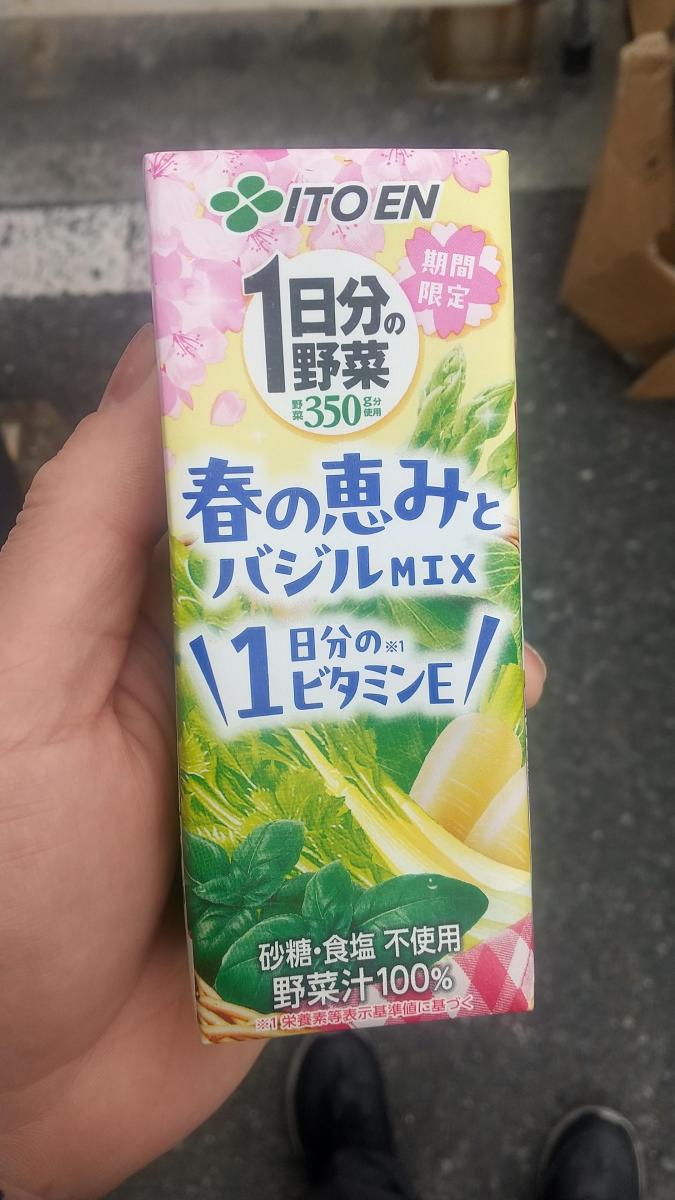 春らしいグリーンとピンク系のパッケージです。春の恵みとバジルミックスという1日分の野菜のドリンクです。