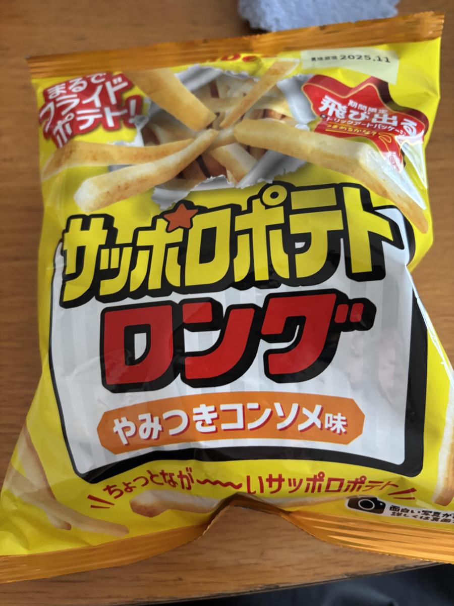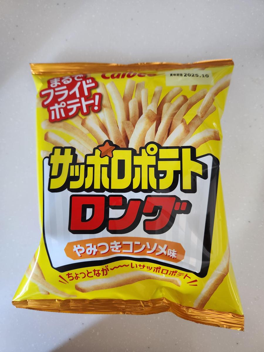 サッポロポテトは好きだけど細くて小さいから食べた気にならない物足りなさがありますが、こちらはロングなので満足感があります。フライドポテトのように楽しめます。コンソメ味で大人も子供も大好きな味。塩味も出たらいいなぁと思いました。