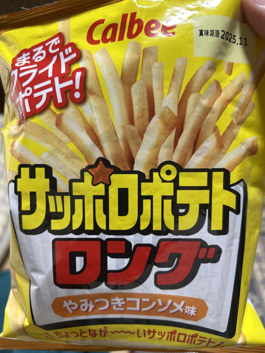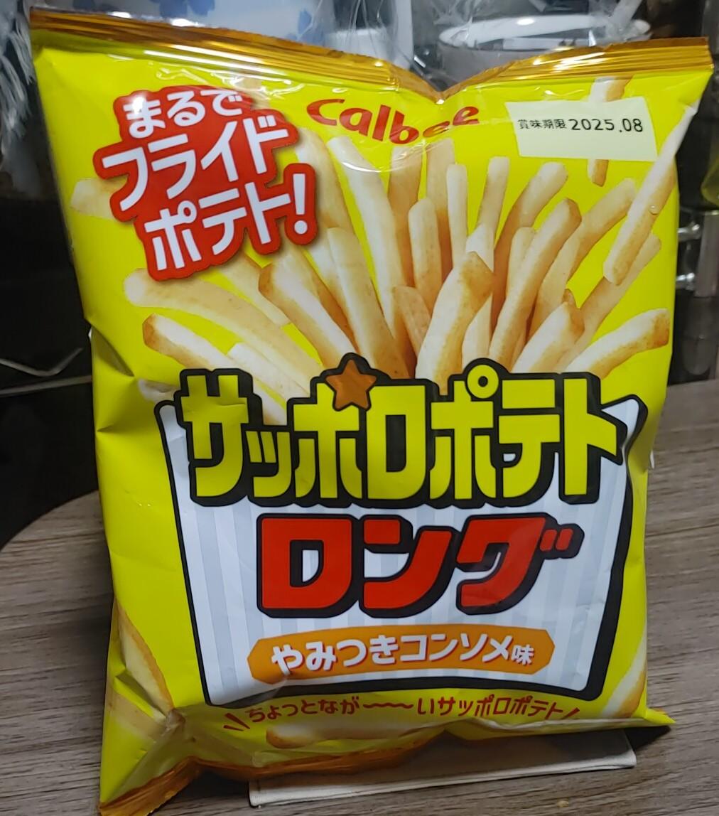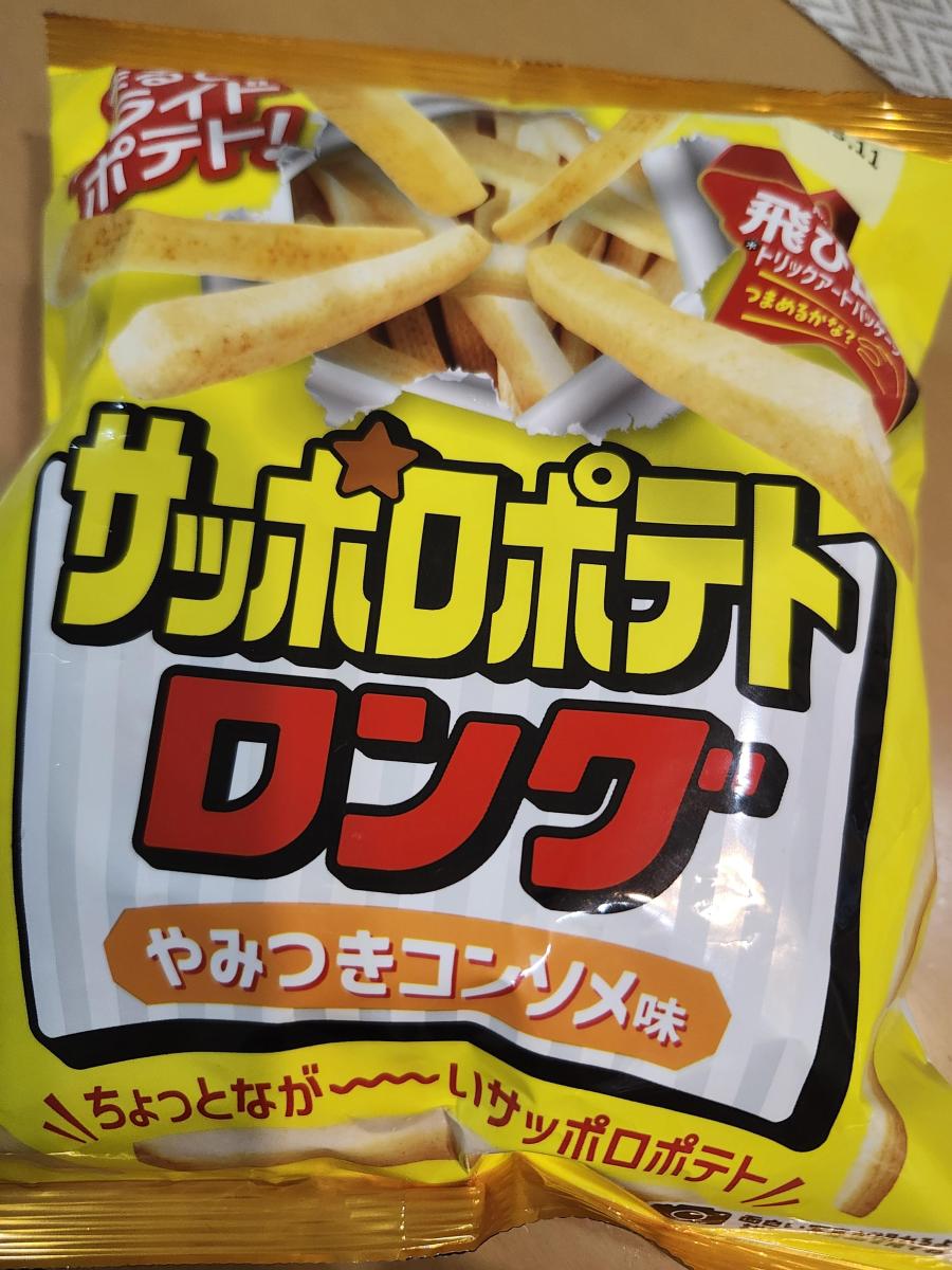 サッポロポテトをなが~くして、味もコンソメ味ですがサッポロポテトをちょっと薄味にしたような感じでよく似た味です。長いので食べやすいし、薄味だけど、ポテト感がこちらの方が味わえます。限定販売ではなくレギュラーでもいいのにと思います