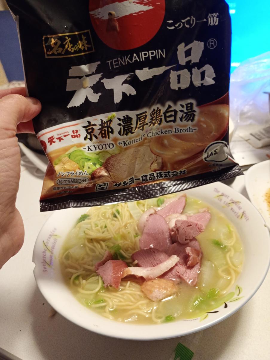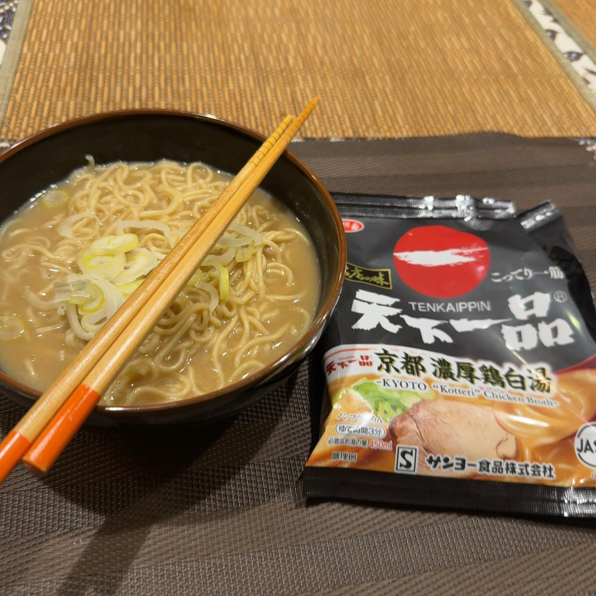 お店で食べる天下一品の味わいをかなり上手く袋麺で再現していると思います。独特な鶏白湯スープには濃厚なコクと旨みを感じます。ツルっとした麺と相性よいです。