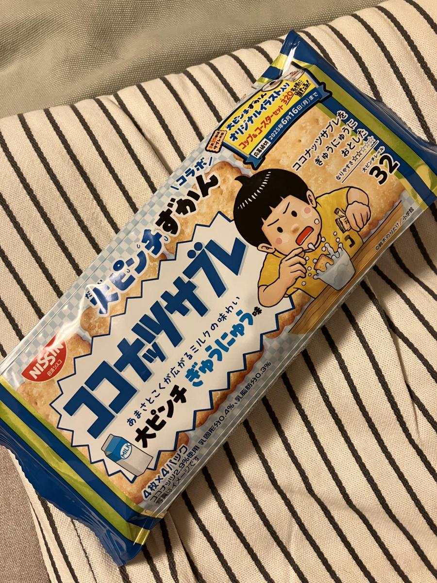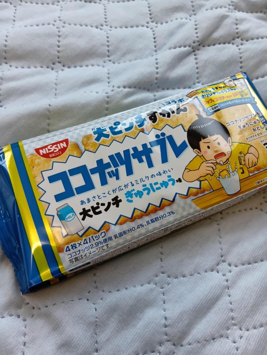 ココナッツサブレが大好きで、ぎゅうにゅう味ってどんな?と気になり購入してみました。大ピンチとのコラボパッケージがかわいいです。個包装なのでシェアできて大変便利です。食べてみると、サクサクした軽い食感がやみつきになります。牛乳の風味とやさしい甘みが感じ、いつものココナッツ味よりマイルドになり食べやすい味わいです。コスパもいいのでまた購入してみたいなと思いました。