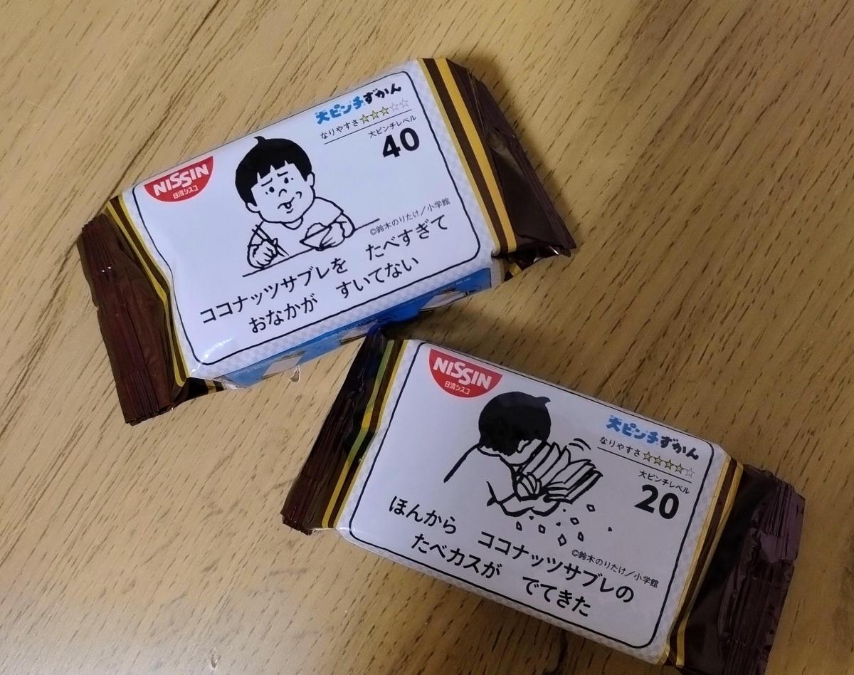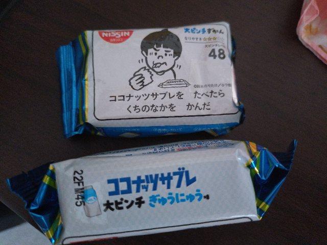 普通のココナッツサブレと食べ比べしたら味の違いがわかりやすいのかもしれませんが、これだけで食べたのであまり牛乳感などわかりませんでした。でも、サクサクした食感やココナッツの風味など美味しく食べました。小分けのパッケージにも大ピンチの事例が書いてあって楽しめました。