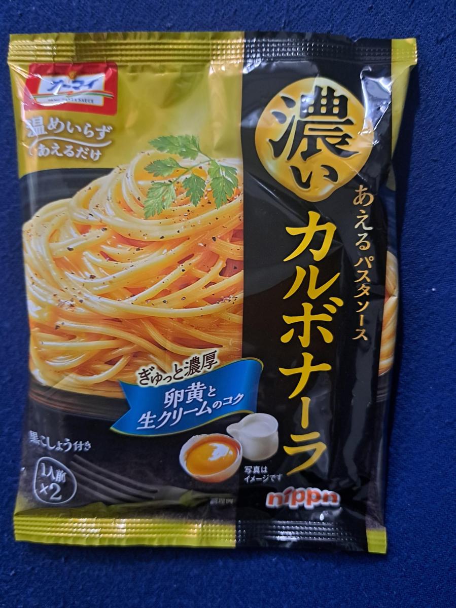 レンジでチンしてあえるだけで便利に使えるパスタソースです。卵黄と生クリームのコクがしっかり感じられる濃厚な味わいで、ソースのボリュームがあればさらに良いと思います。