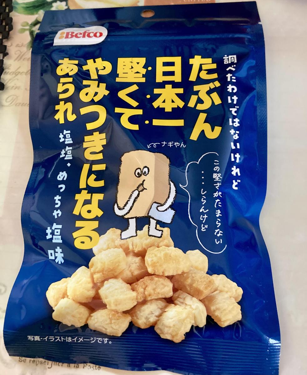 先にコチラの醤油味を買ってみで美味しかったので、今回は塩味を買ってみました。日本一堅い、とありますが、そこまで堅くはなく、カリカリとした食感で美味しかったです。塩味も程よく、小粒なのでとても食べやすいですね。確かにやみつきになる味わいでした。
