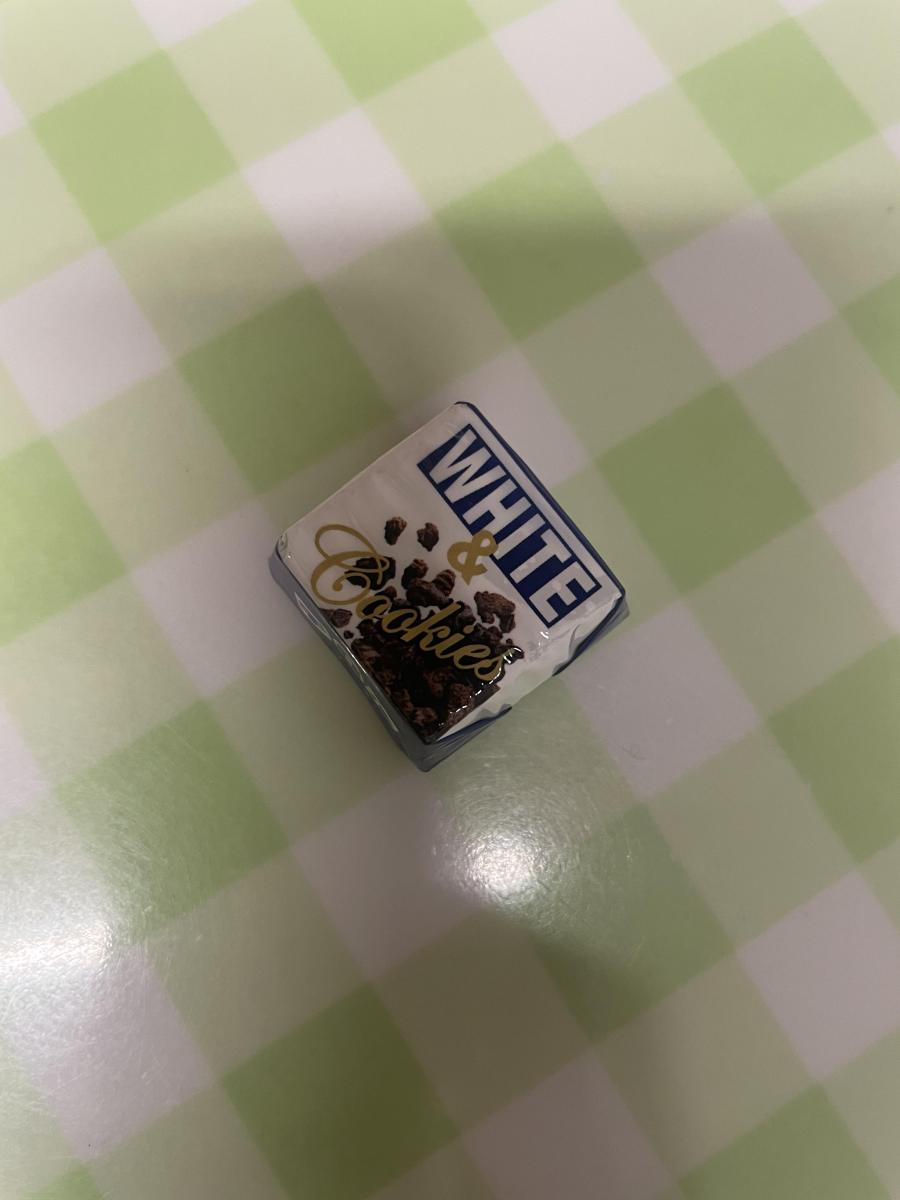 チロルチョコの中でお気に入りフレーバーのひとつ、ホワイト&クッキー。