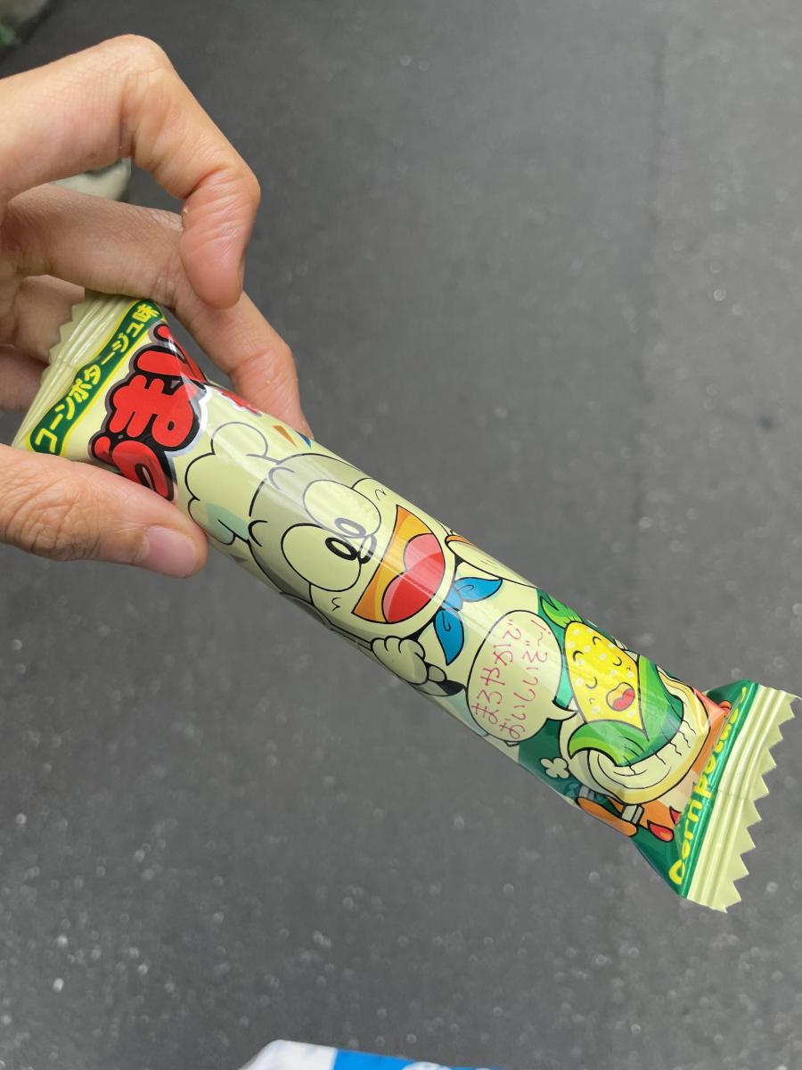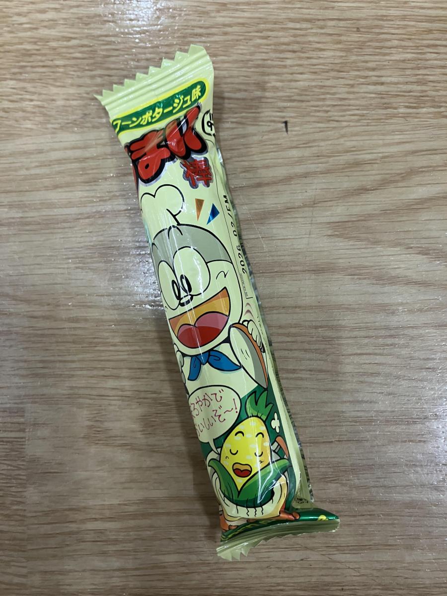 粉末のコーンスープの素をコーンスナックに掛けているような感じですが、子供の頃からうまい棒の中で1、2を争うくらいに好きでした!濃いコーンポタージュの味がしておいしい!