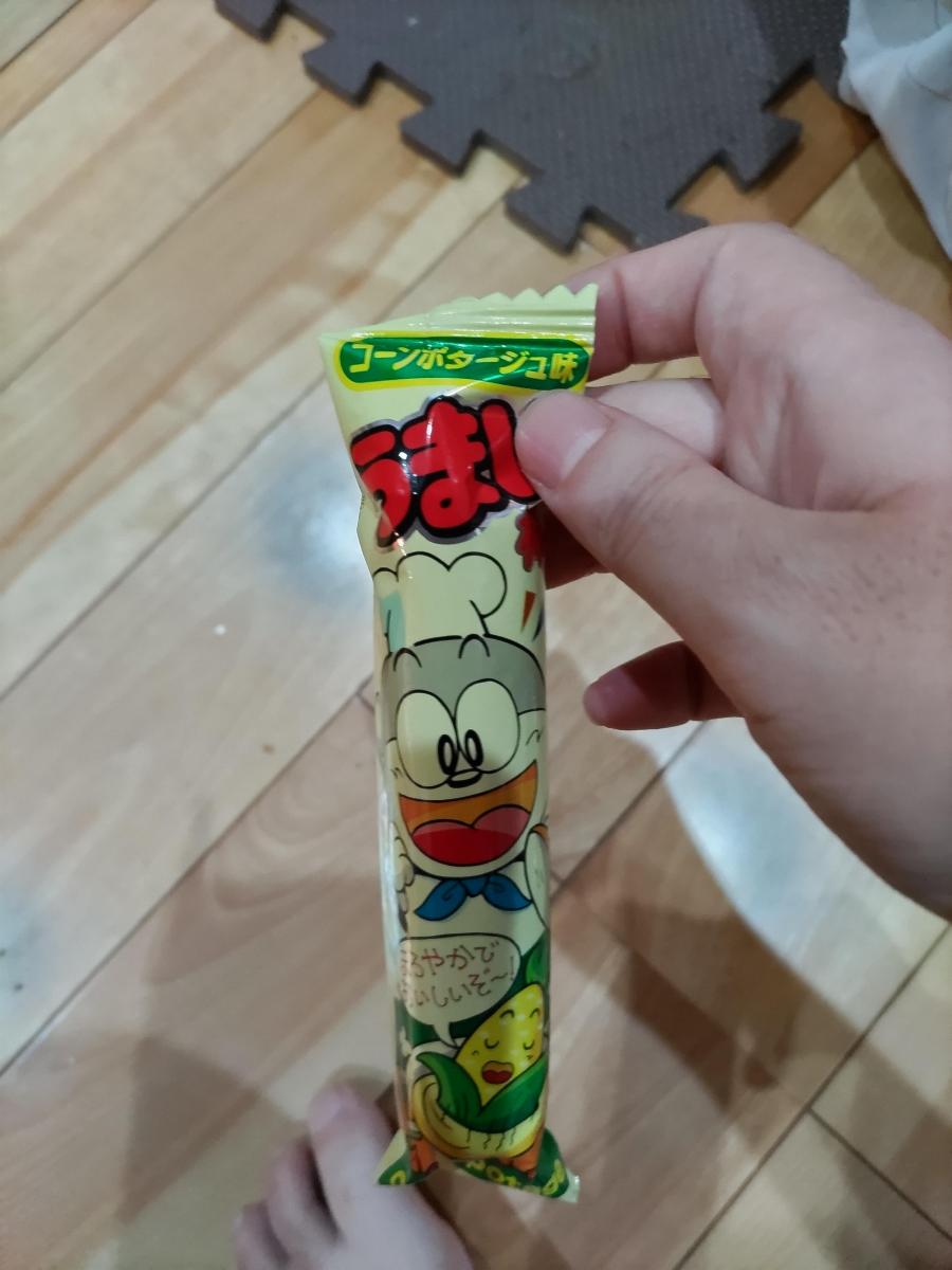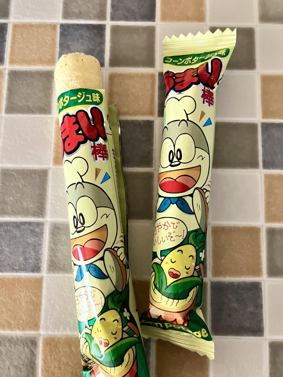 うまい棒はさまざまなバリエーションがありますが、昔からあるロングセラーのコンポタ味が一番美味しく、時々食べたくなります。優しい味付けで変わらぬ美味しさです。