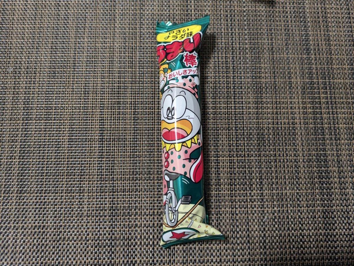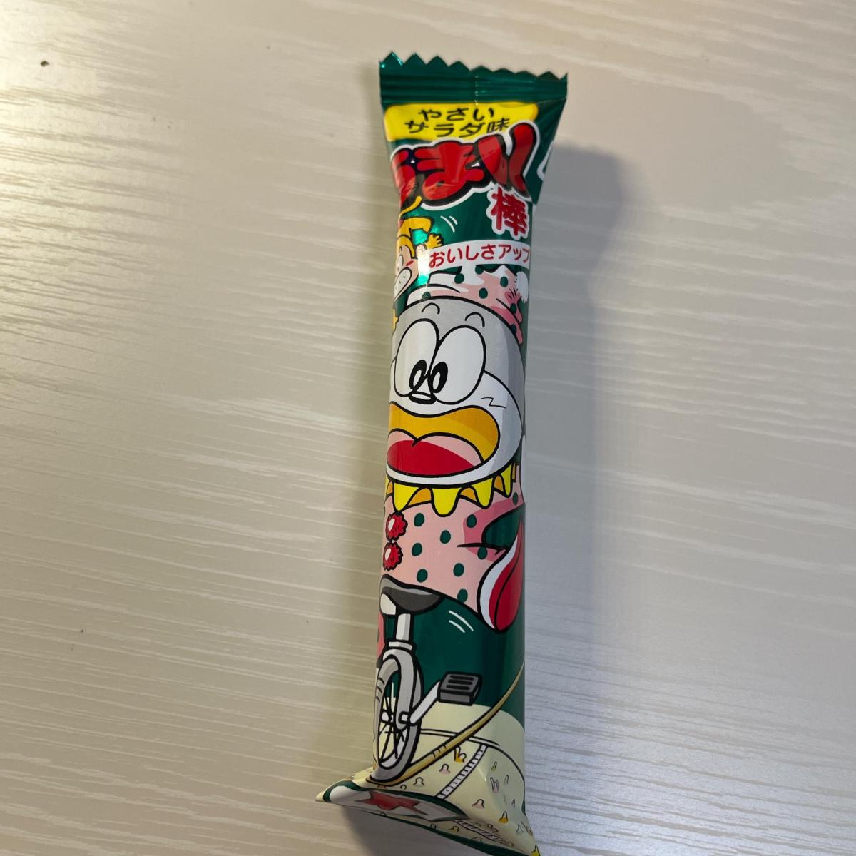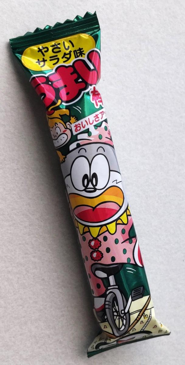 サラダ(野菜)というよりはドレッシングの味。野菜の甘みとビネガーの酸味にガーリックでパンチをきかせたうまい棒。サラミと並んで大人にもすすめたい味。バランスがいい1本はおつまみにもできそうな味。