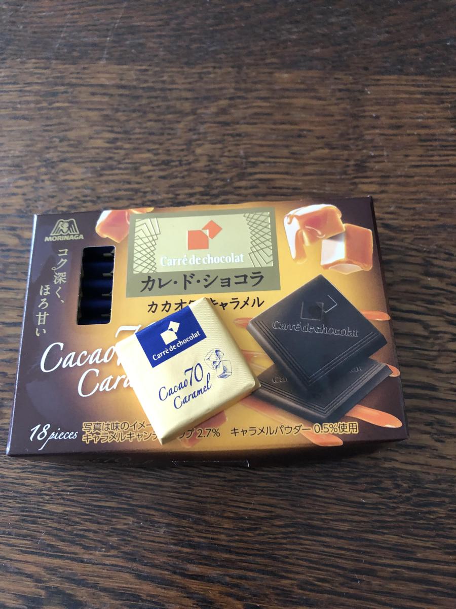 パッケージなどがオシャレで、特別感がある『カレ・ド・ショコラ』。カカオ70%のハイカカオにキャラメルの組み合わせが気になって購入しました。