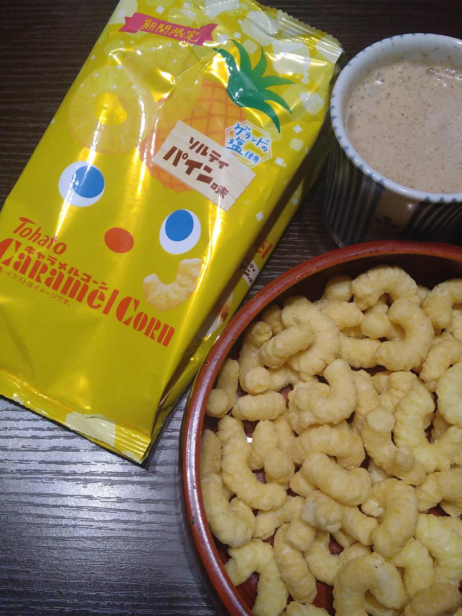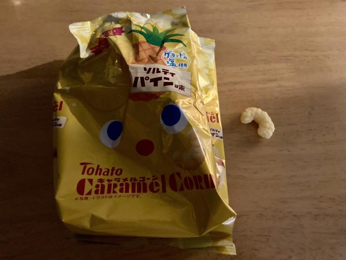 キャラメルコーンは昔から軽いサクサク感でよく食べてます。ソルティパイン味は、パッケージからパインの美味しさが伝わってきます。