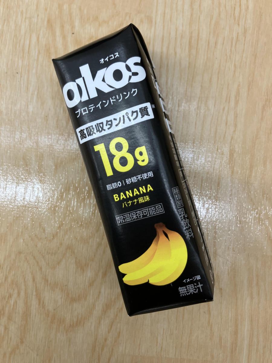 バナナの風味があるので、飲みやすいです。また、オイコスはタンパク質が吸収されやすいので、心強いです。それから、常温で長期保存できるので、持ち運びも安心です。