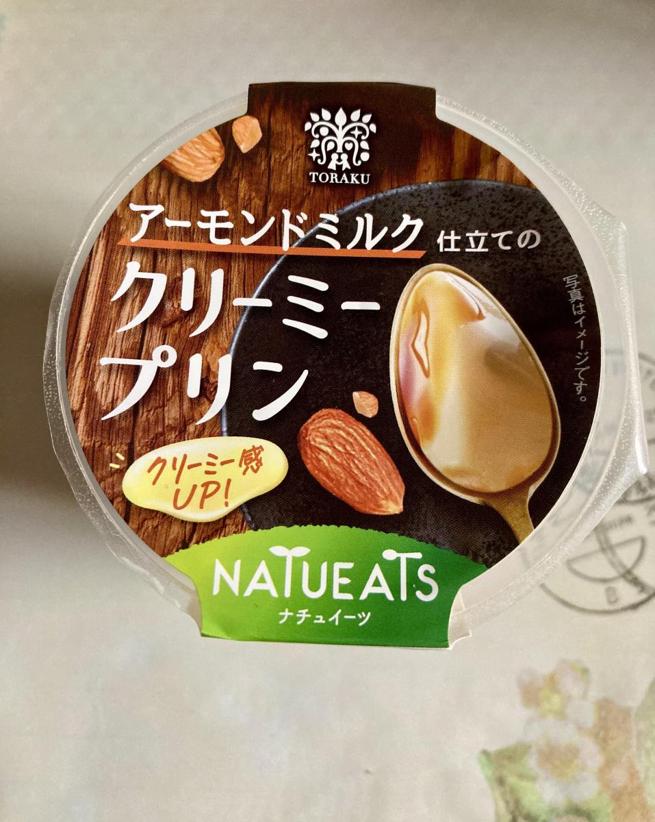 アーモンドミルク仕立てのクリーミープリンのネーミングに惹かれてどんな味か試したく購入してみました。プリンはなめらかで、口どけが良く、少し硬めな食感でした。程よいたまご感があり、アーモンドミルクよりも豆乳の風味がしっかり感じられました。カラメルソースは少量しかなく少しがっかりでしたが、美味しい味わいでした。