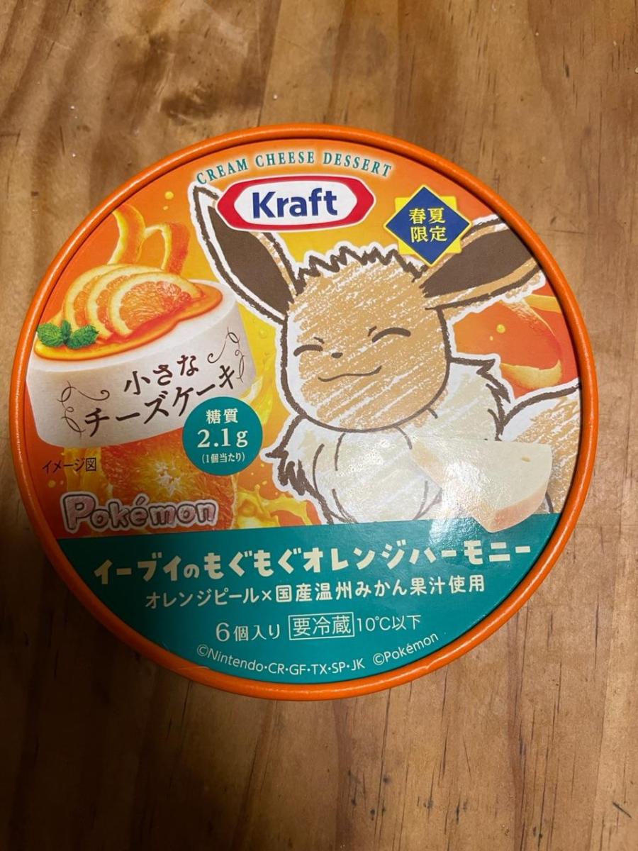 こちらの小さなチーズケーキのシリーズはちょっと甘いものが食べたい時に手軽に食べられて美味しいです。イーブイのパッケージが可愛くて購入してみました。オレンジチーズケーキのような爽やかな味わいです。