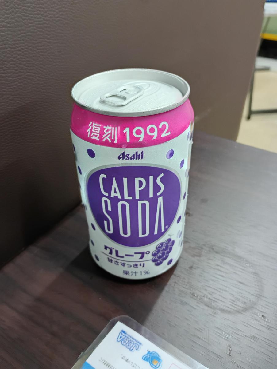 復刻版のカルピスソーダです。少しですが果汁も使われていてカルピスのまろやかな甘みにグレープの酸味な微かな苦味が加わっていて、とても美味しいです。