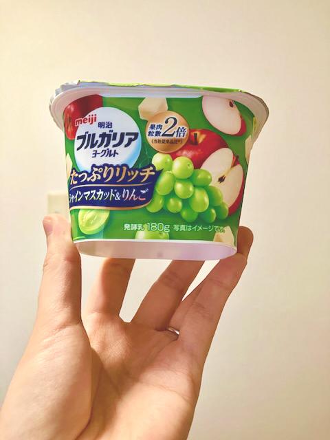 ブルガリアヨーグルトにたっぷり果肉が入っていて美味しいです。爽やかな酸味のシャインマスカットが盛りだくさんで贅沢な味です。スッキリした後味で美味しく気に入っています。
