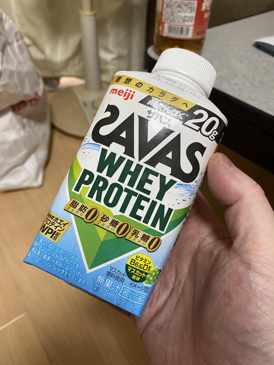 プロテインと言うと飲みにくいイメージがありましたが、こちらのSAVASはマスカット風味でさらっとした飲み心地でとても飲みやすいです。運動時にはもちろん日常的な水分補給にも飲みやすいです。