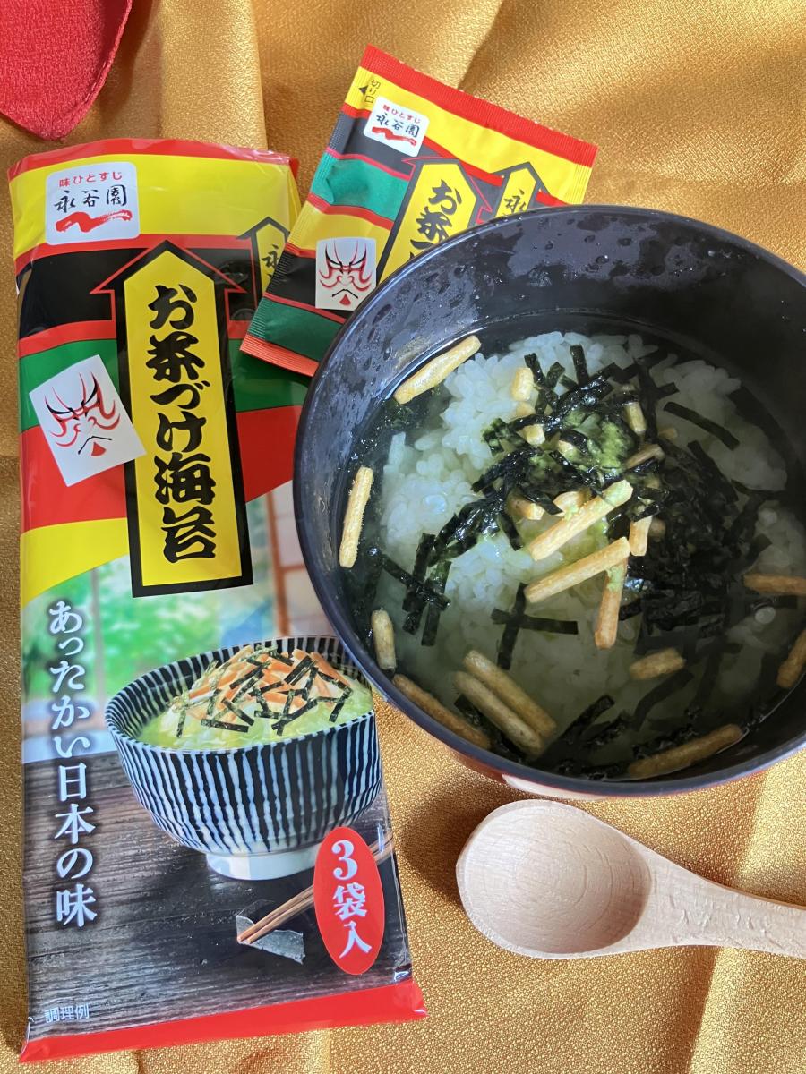 お茶づけといえば昔から馴染みのある、この見た目この味の永谷園のお茶づけ海苔です。