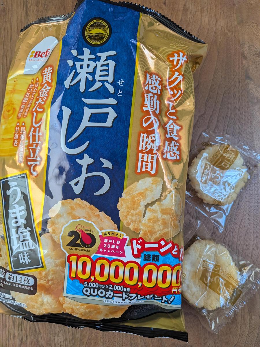 サクッとしてふわふわと軽い食感のおせんべいが大好物なので、個人的に推してる瀬戸しおシリーズ。