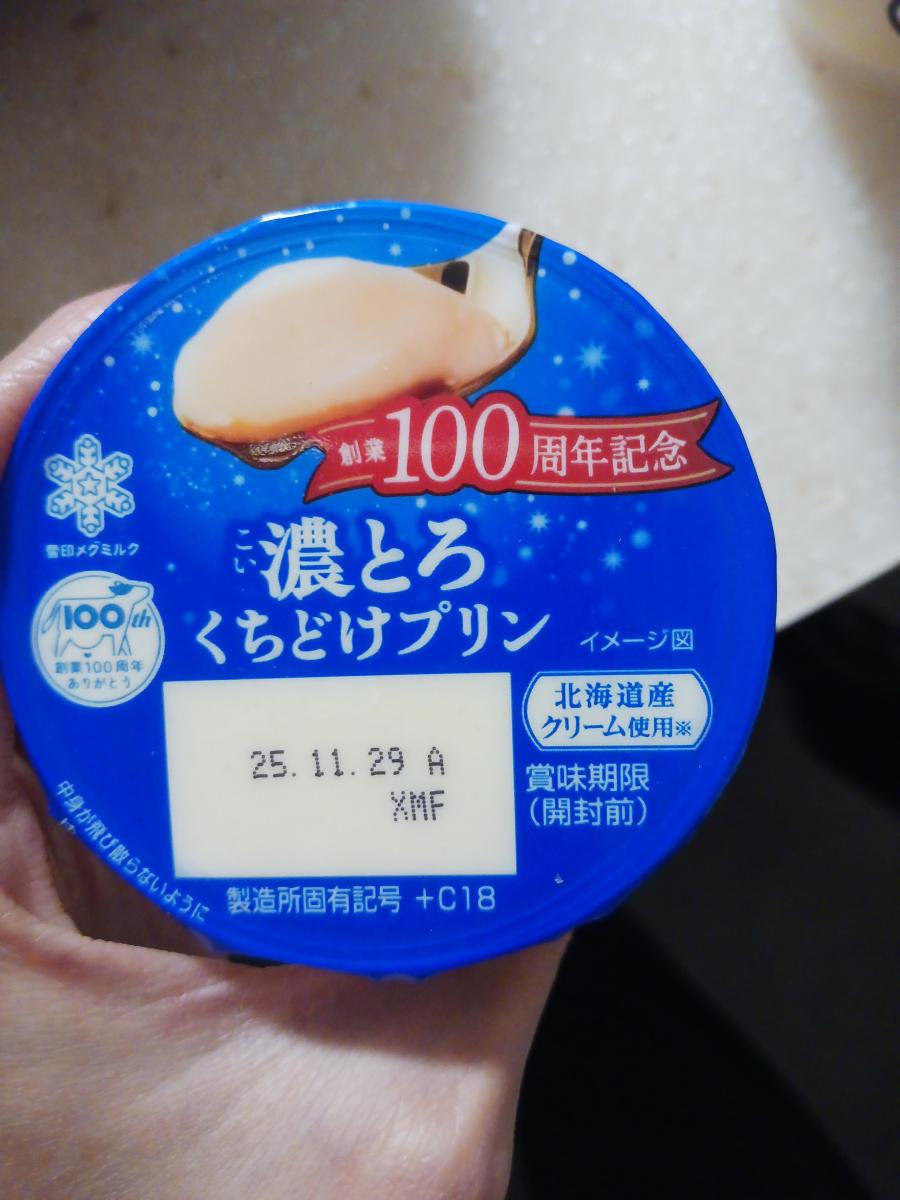 コンビニで見掛けたけれどメグ製はクリーム&…のイメージが強くてコーヒーフレッシュを何にでも掛けてた頃は食べたけどどうも🐣で固まってると言うよりもゼラチンやゲル化剤みたいな味わいの印象が強くて今回は記念の🍮みたいだけれど透明カップ容器から透かして観察しちゃう位用心して値引きに出会えたら違ったけどスル~して忘れかけてた。でも冷蔵庫に出現!👦は私と好みが似て🍮好きなので半額を見つけて買って来たみたい。