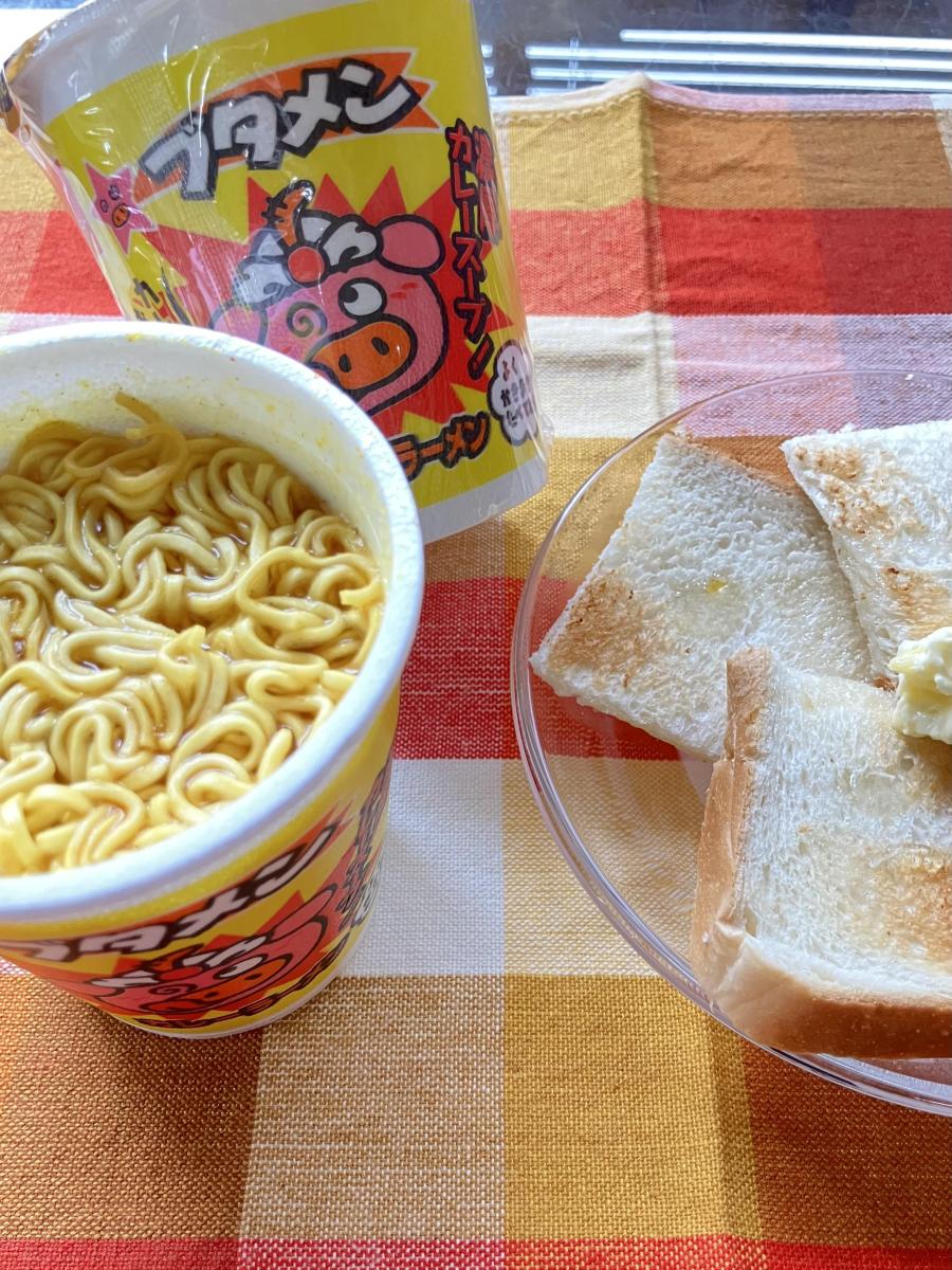 とんこつの旨味を生かしつつ、カレー風味のあるおいしいスープでした。少しスパイス感もありましたが、辛さはなくて食べやすかったです。ブタメンのカレー味ってどうかな?と思いつつ買ったのですが、ブタメンらしさをしっかり残しつつ、ほどよい程度で味変していてよかったです。スープがおいしいので麺をもっと食べたくなってしまいました。