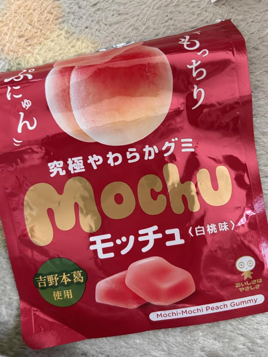グミですが、噛み心地がモチモチしていて柔らかく、とても柔らかなお餅を食べているような感じでした。ちょうどきび団子のような食感です。香りがホンワリとしていて、桃の味も感じられました。また購入したいです。