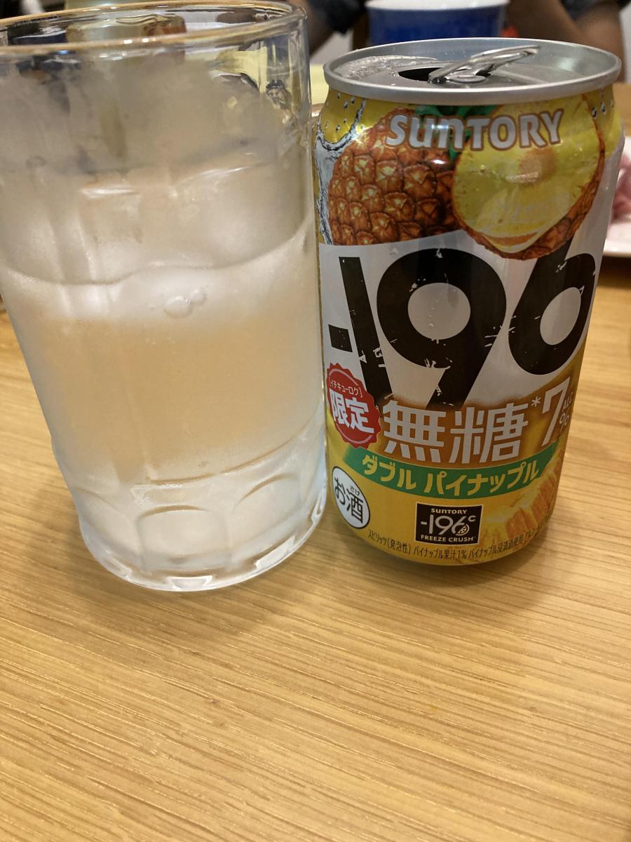 ダブルパイナップルの割りには果汁感が薄く思いました。無糖ということで甘さもかなり抑えられているのでしょうがちょっと物足りない感じでした。アルコール度数が7%あるので気持ち良く酔えました。