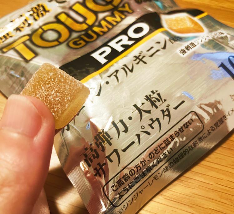 味は、強刺激という程では無いですがピリリとしたジンジャーの刺激が心地よく、レモンの爽やかな酸味がクセになる味わい。ジンジャーエールっぽい。美味しかったです。配合成分に加えてしっかり弾力と心地よい刺激で、目も頭も冴えそうです。