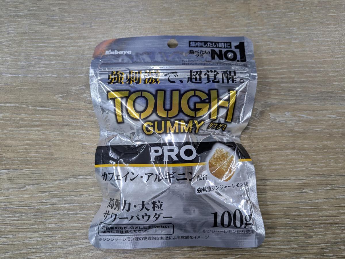 タフグミは、筋トレの途中で気合いを入れる為に食べています。噛みごたえがあり、カフェインで、気分がシャキとします。酸味もちょうどいいので食べやすいです。