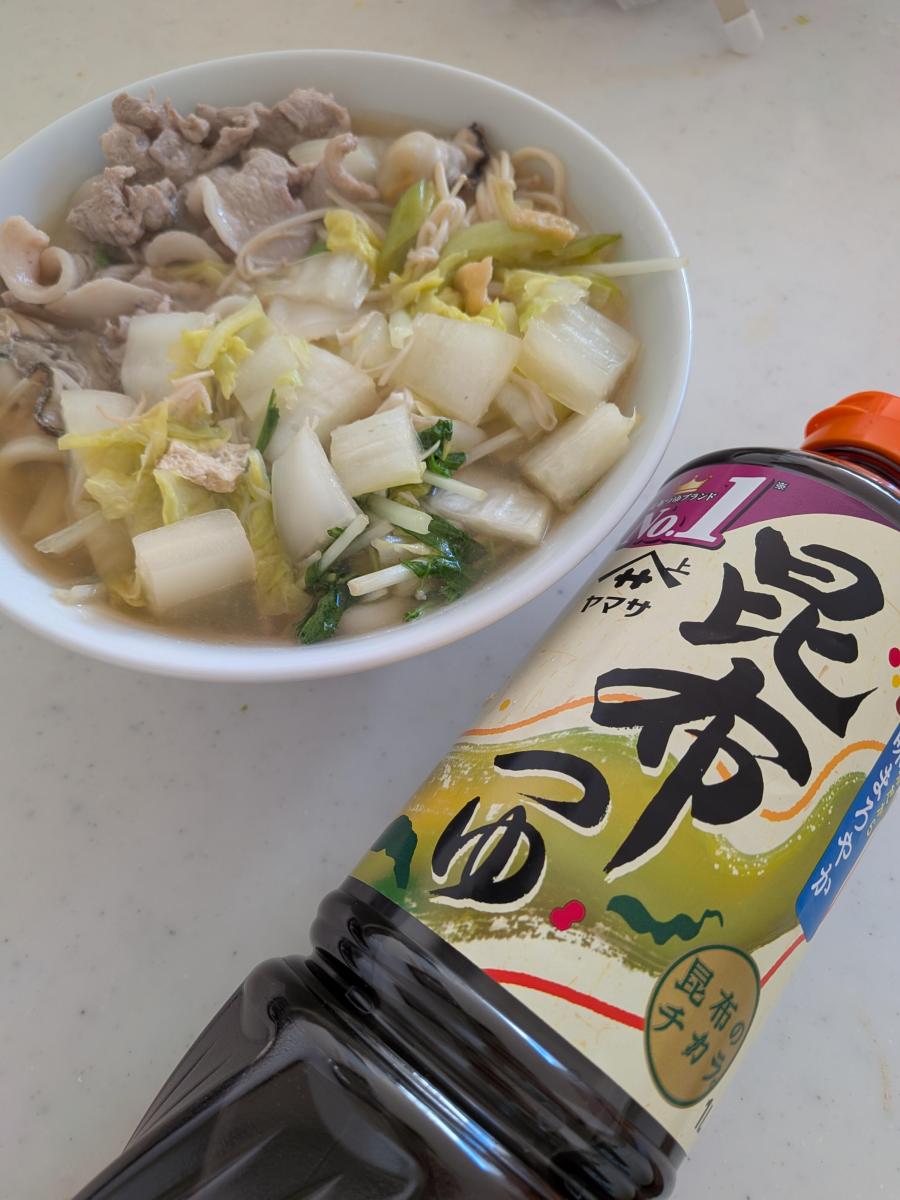 煮物や汁物などの味が物足りないときは、昆布つゆを少し入れると味がまとまる感じがします。