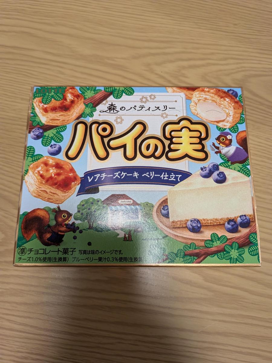 とても可愛い森の中のリスさんパッケージでお馴染みのサクサクパイの実、今回レアチーズケーキ味が出ていたのでさっそく購入しました。レアチーズケーキ大好きなのでとてもワクワク!しながら食べるといつものサクッと美味しい軽い食感のパイの中にチーズケーキ味とほんのりベリーのチョコが入っていてとても美味しかったです。強くはないですが、ちゃんとレアチーズ感もありました。いつものちょこのパイの実ももちろん美味しいですが、ちょっと変わった味が食べたい!と思ったときまたぜひリピートしたいです。