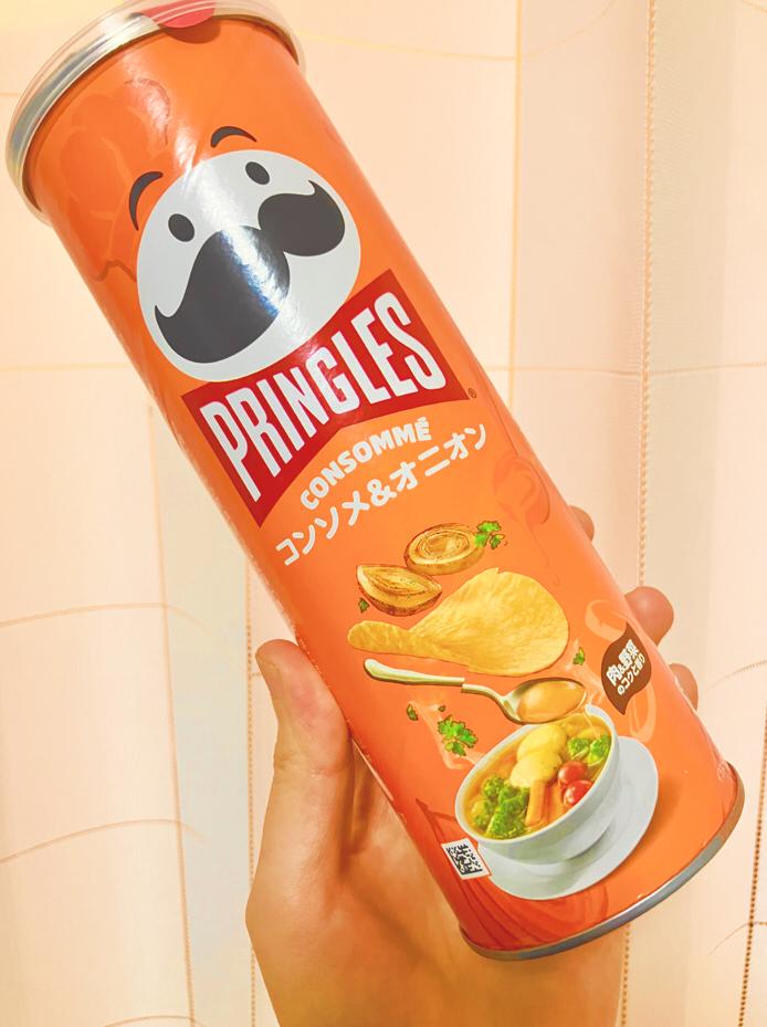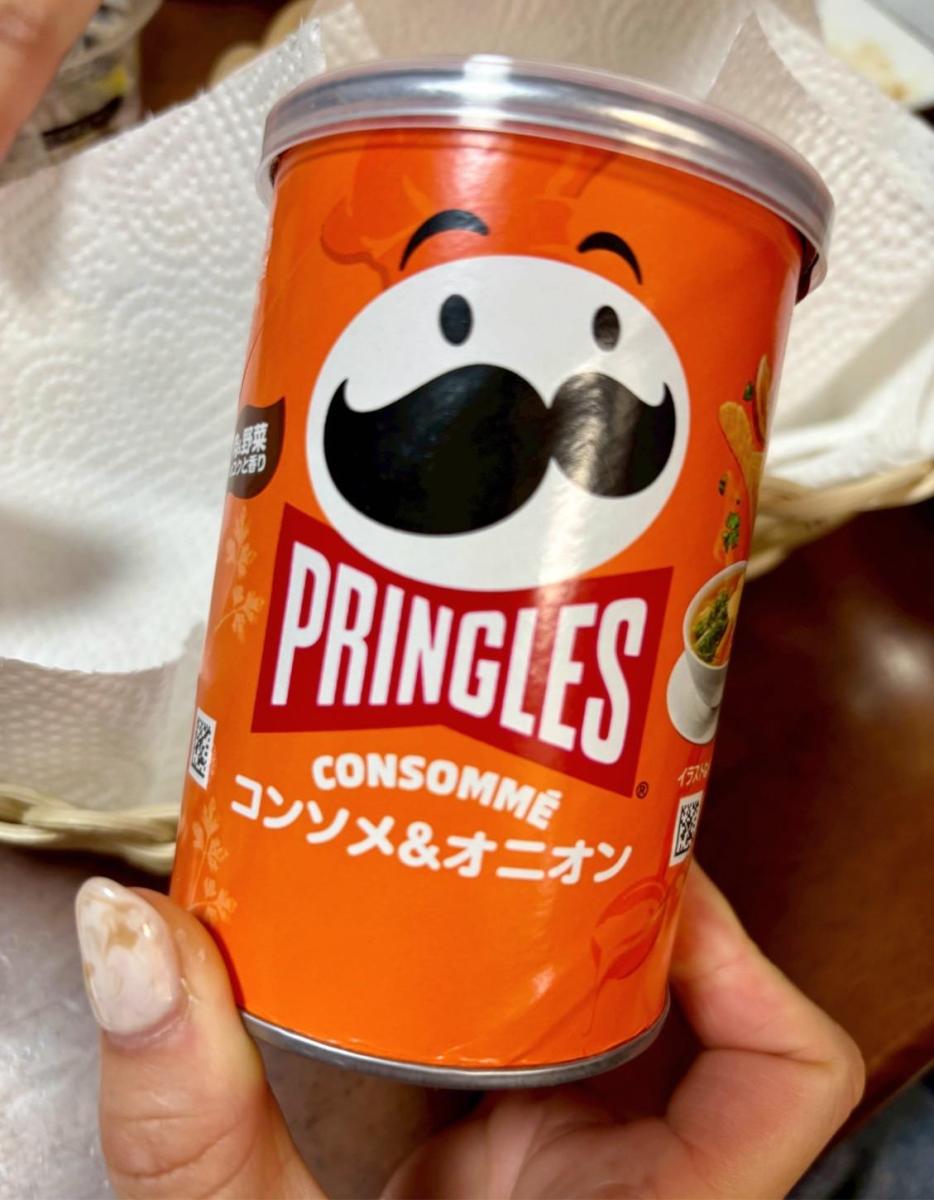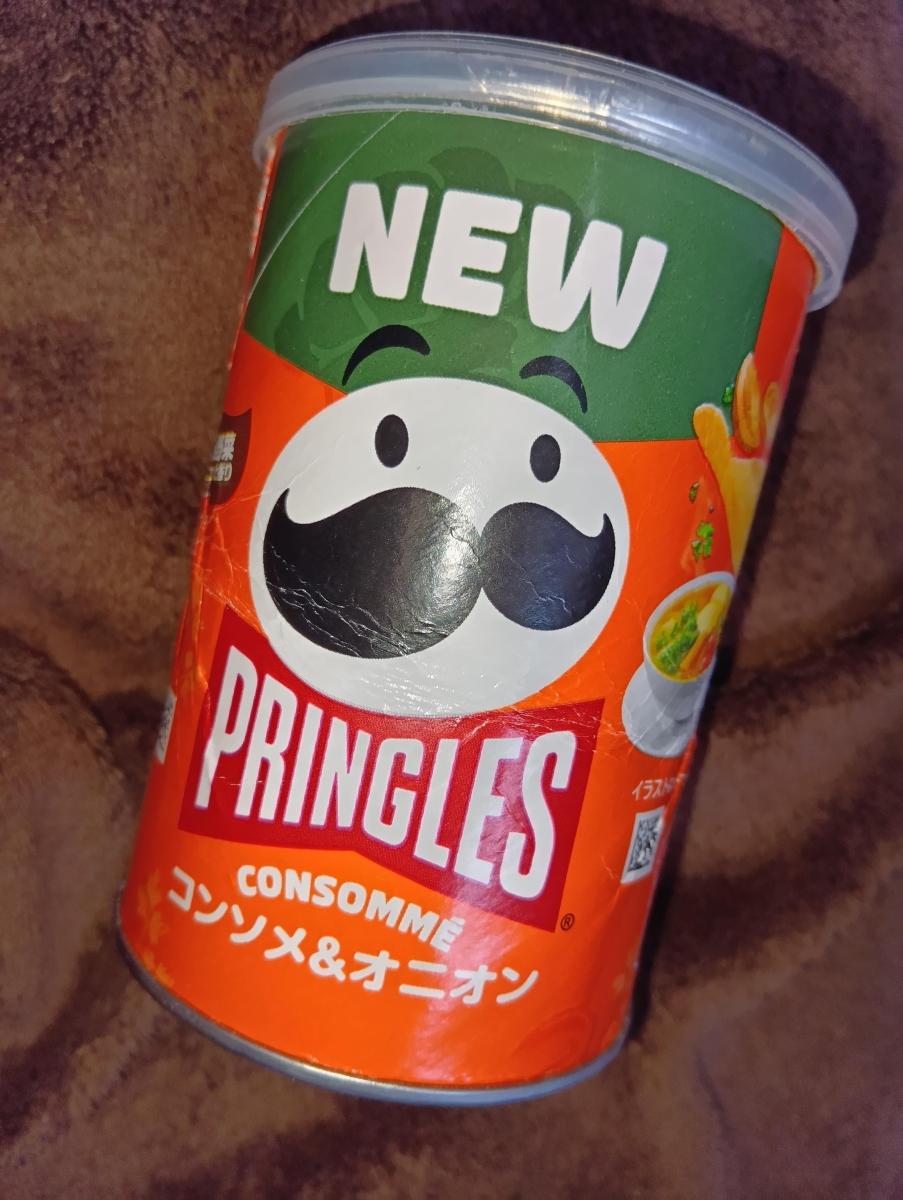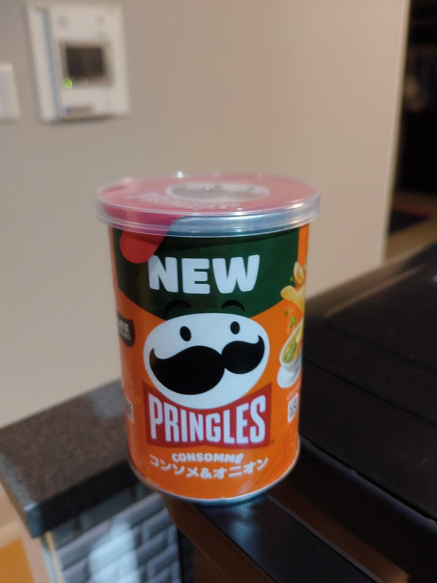 特売していたので購入しました、プリングルス。コンソメ&オニオン、食べる前から絶対美味しい。