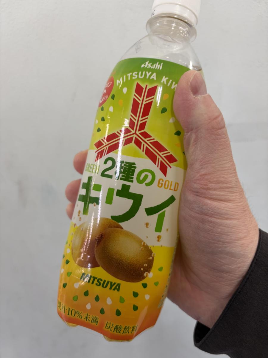 珍しいキウイ味の炭酸飲料です。
