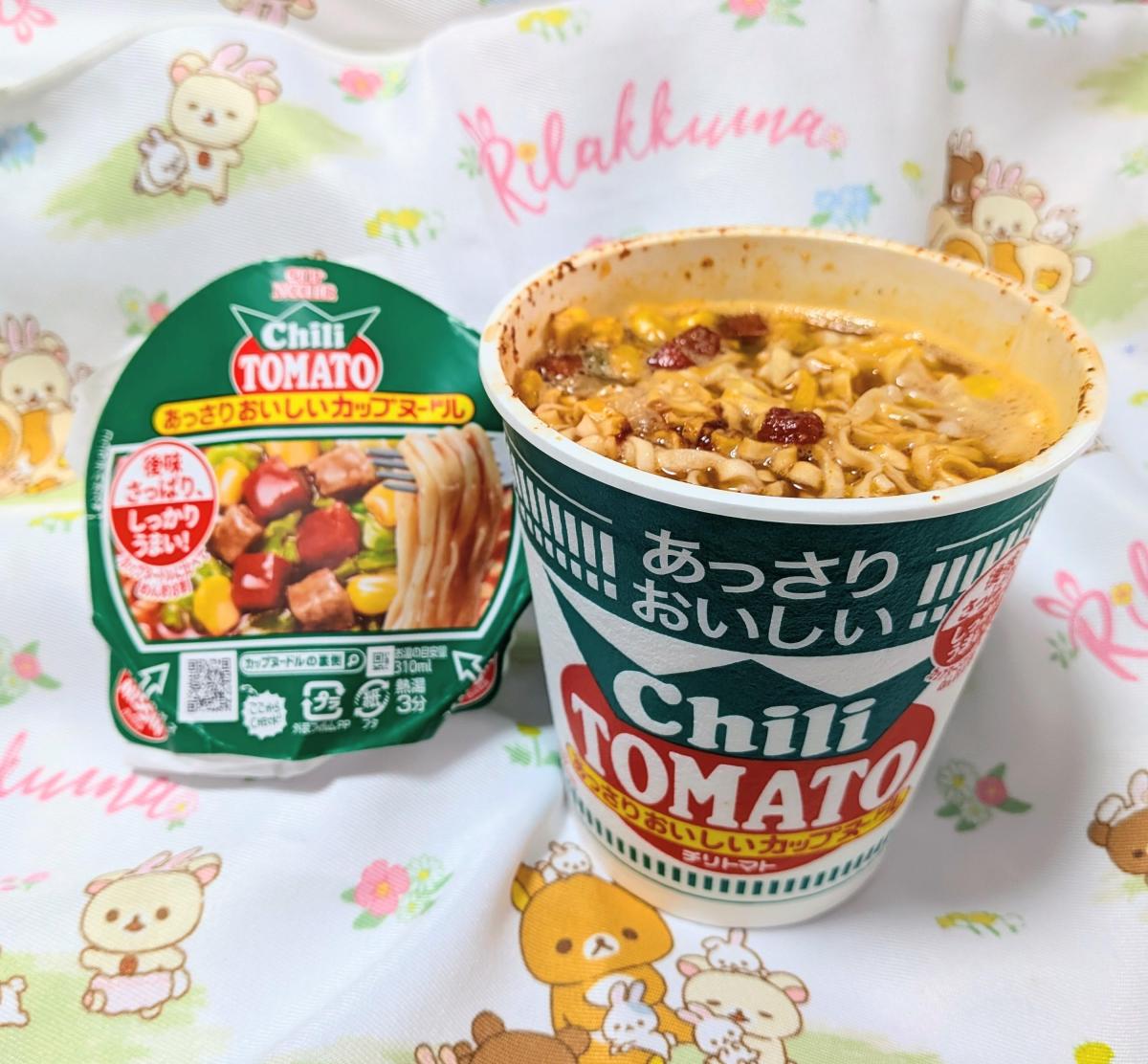あっさりおいしいというチリトマトカップヌードル。通常のチリトマトも大好きなので、あっさりになるとどんな感じになるのかなと、気になります。