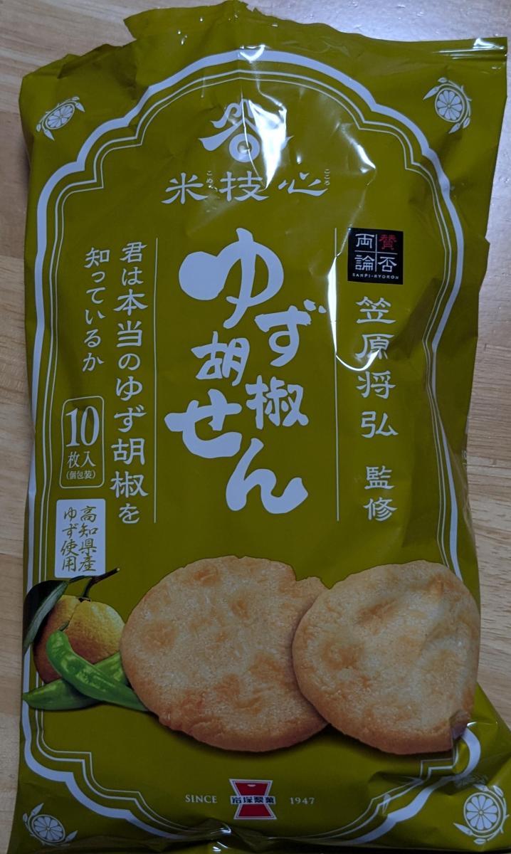 柚子胡椒が好きなのですが、「柚子胡椒味」のお菓子はあまり見かけないので買ってみました。袋を開けると柚子の香が立つ。一口食べてすぐに広がる柚子の味。が、肝心の辛みが弱いと感じました。上品な柚子胡椒味です。
