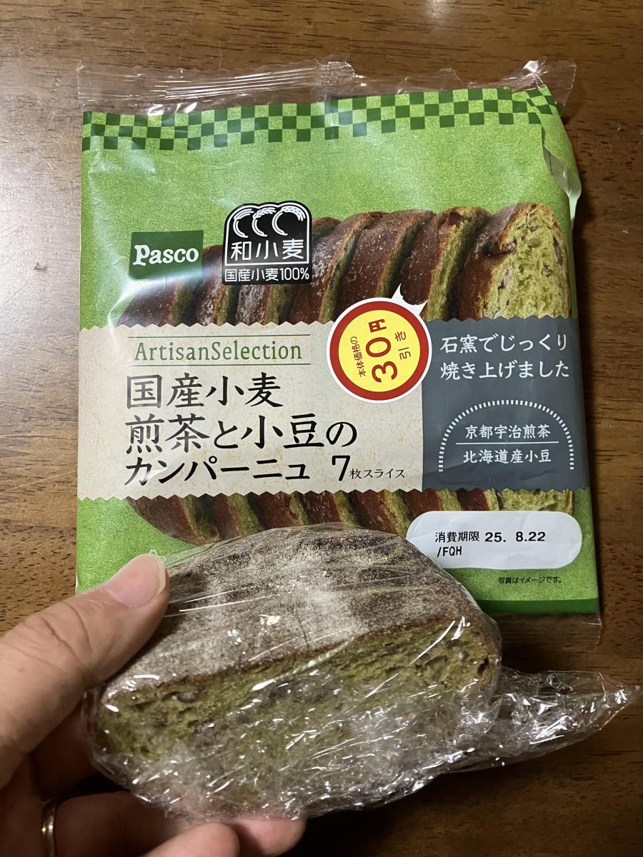 この国産小麦のカンパーニュのシリーズは、パン専門店の商品のような本格さがあるのだが、これは煎茶に小豆入りとちょっとあ変わり種でそれがプレミアム感の演出にもつながっている。食べる前から楽しみがもてるパンなのだが、食べてみても期待を裏切られないおいしさ。軽くトーストしてみるとこれが最高で、お茶の香り、小豆の甘みがしっかりとひきたって、このフレーバーのおいしさをダイレクトに実感できるところかいい。さらに食感もアップというか、これが本来の食べ方というようなしっとりしていながら表面はサクッと軽くなる、このあたりが石窯焼きのパンということなのかなと感じる。塩気とのマッチングもいいのかも、とマーガリンもトッピングしてみたが、このパンはどうもそのままパンそのものの味わいを楽しむのが良さそうで、シンプルに軽くトーストして何もなしに食べるのが絶対にオススかと思った。
