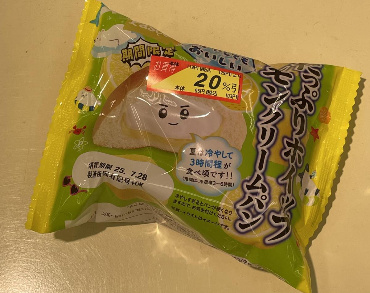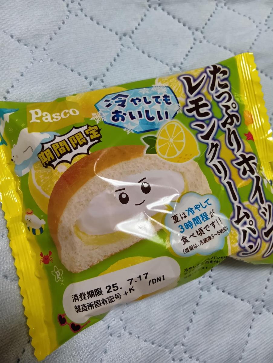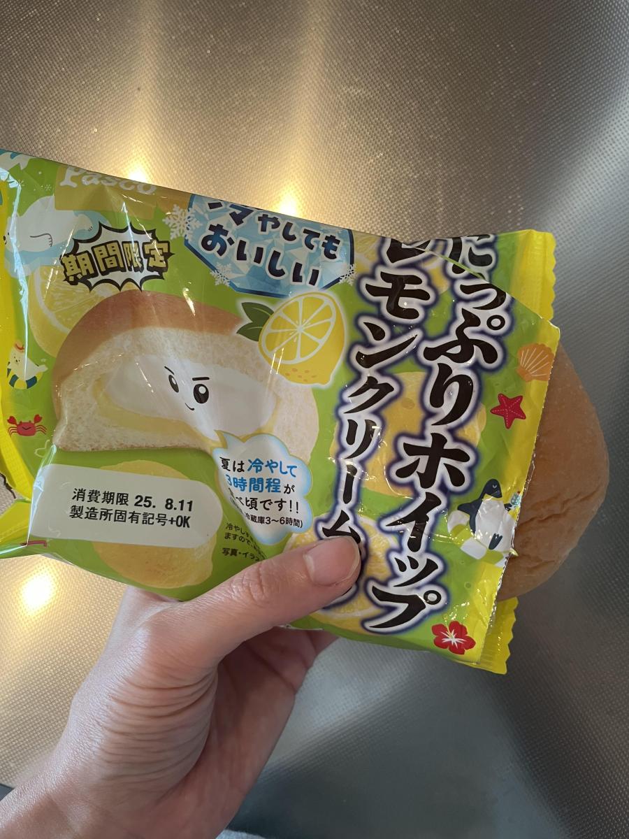 この酷暑で、どうしても食欲が落ちてしまい、パンを食べるのも結構、キツくなってしまいました。コチラは、ふんわりとした柔らかいパン生地の中に、爽やかなレモンクリームとホイップクリームが入っていて、とても食べやすかったです。冷蔵庫で冷やして食べましたが、すると中のクリームがひんやりとして、食欲がない朝でも美味しく食べられました。酸味って、夏には大切ですね。笑。