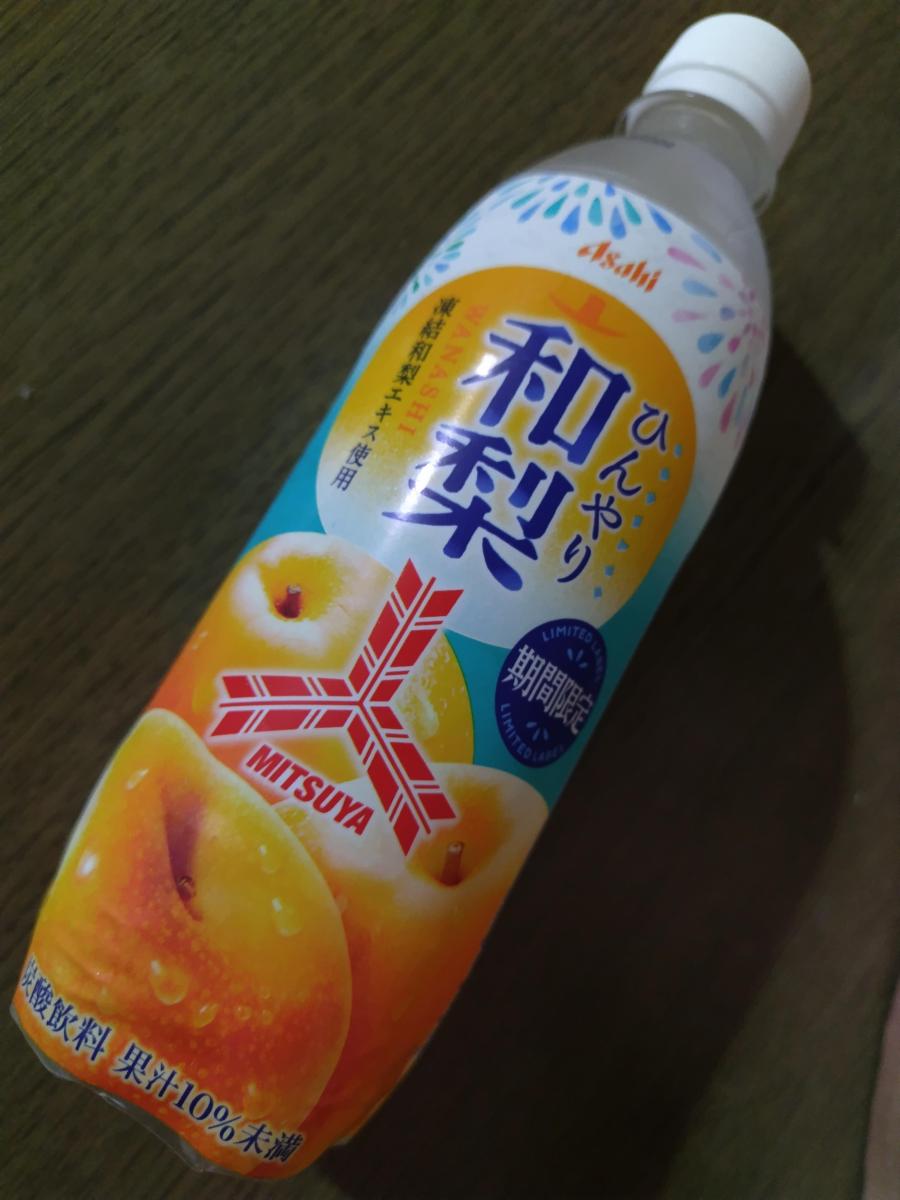 蕩けるような和梨の良い味がして、とても美味しいです。砂糖類の甘さも、それほど強くなく、良い塩梅です。微炭酸ですが、和梨の味を邪魔していなくて、良いと思います、和梨、糖類、炭酸の全てが、夏の暑さに丁度よく感じました。近くのセブンイレブンで、安売りされていたので、また買いたいと思います。