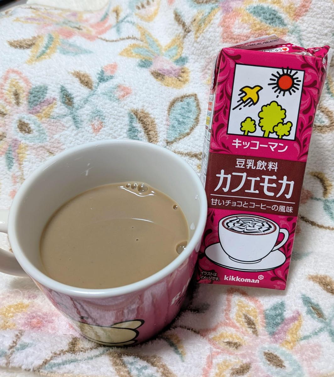 キッコーマンの豆乳シリーズは結構甘い印象がありましたが、カフェモカは甘いながらもくどすぎなく割と飲みやすかったです。ココアっぽくて子供も好きな味です。