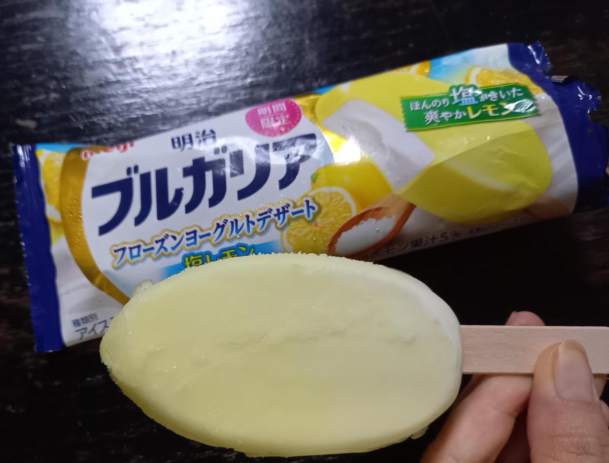 かなり表面のコーティング部分の塩味がきいていて、レモンの酸味とともにいかにも夏向けのアイスクリームだなと思える。この味は暑いさなかに汗をかきかきというシーンが本当に絵に浮かぶような感じで期間限定フレーバーというのもとてもよく理解できる。その塩レモンの酸味と塩味の中に甘酸っぱいヨーグルトアイスがあるのだが、塩レモン味が特に甘さを引き立ててくれているなと感じる。なので、全体的にとてもわかりやすいというか、このフレーバーのおいしさのポイントが明確なところにすごく好感がもてるという印象で、おいしさそのものはもちろん、企画がとてもいいところが素晴らしいなと思った。