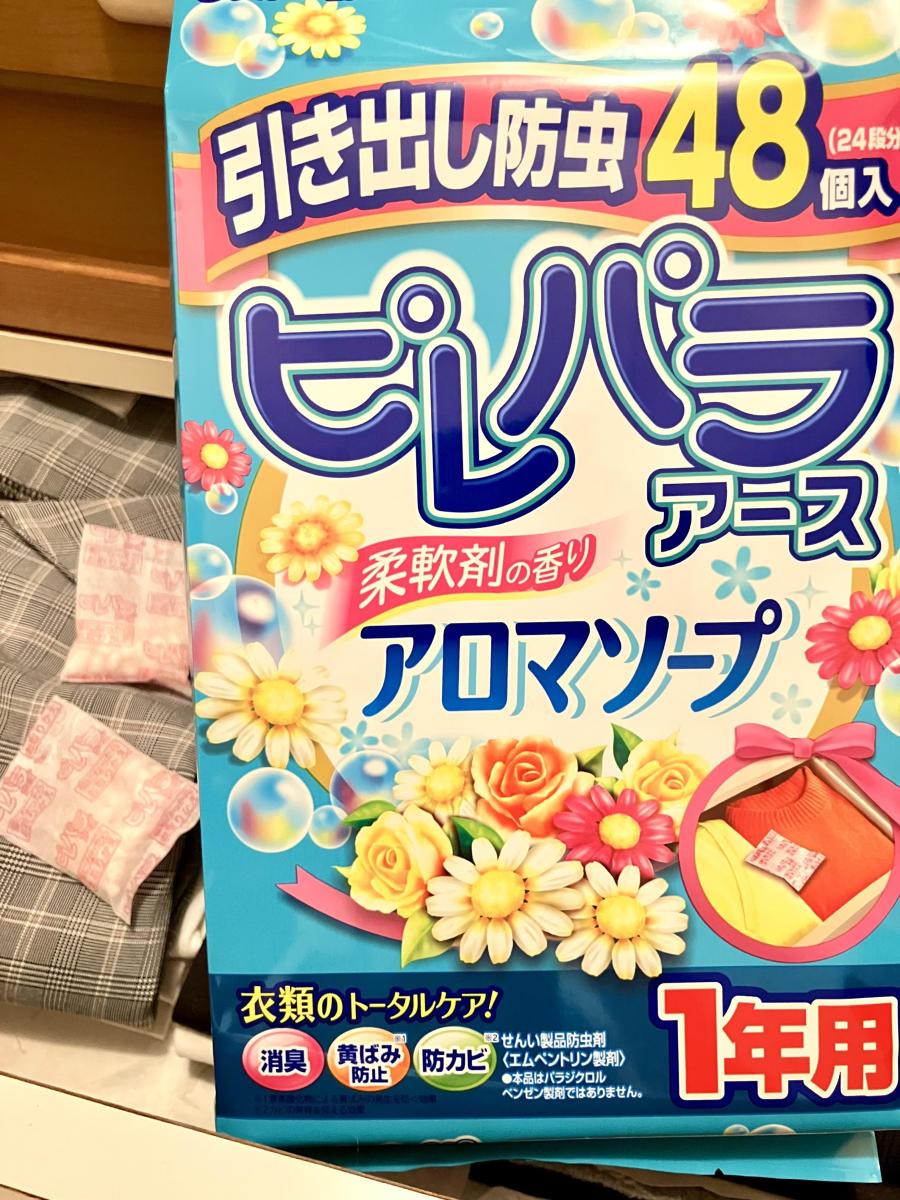 防虫、防カビ、黄ばみ防止など衣類をケアしてくれて衣類の保管に安心できます。アロマソープの香りもよくいい香りが広がり清潔感があります。粒の色が変わるので取り替え時期も分かりやすく容量も多くコスパもいいです。