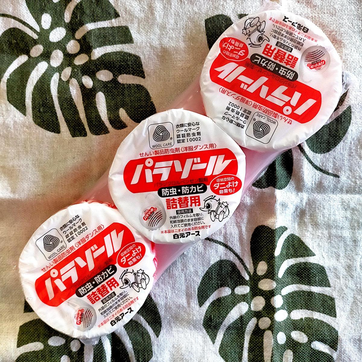 かなり前からある洋服ダンス用の防虫剤です。つるすだけで簡単で、季節の変わり目に洋服ダンスの中身を入れ替える際に長年使っています。詰め替えタイプはコスパ高いです。