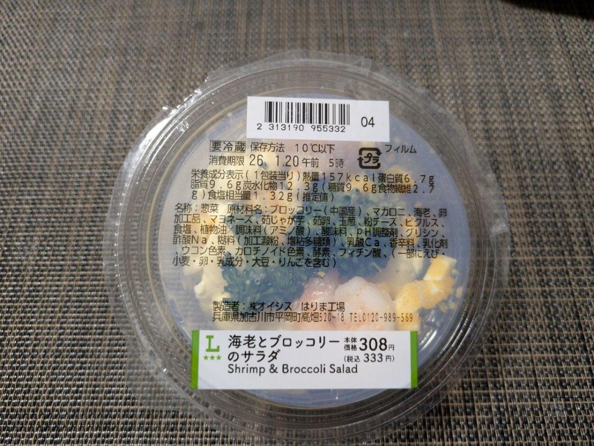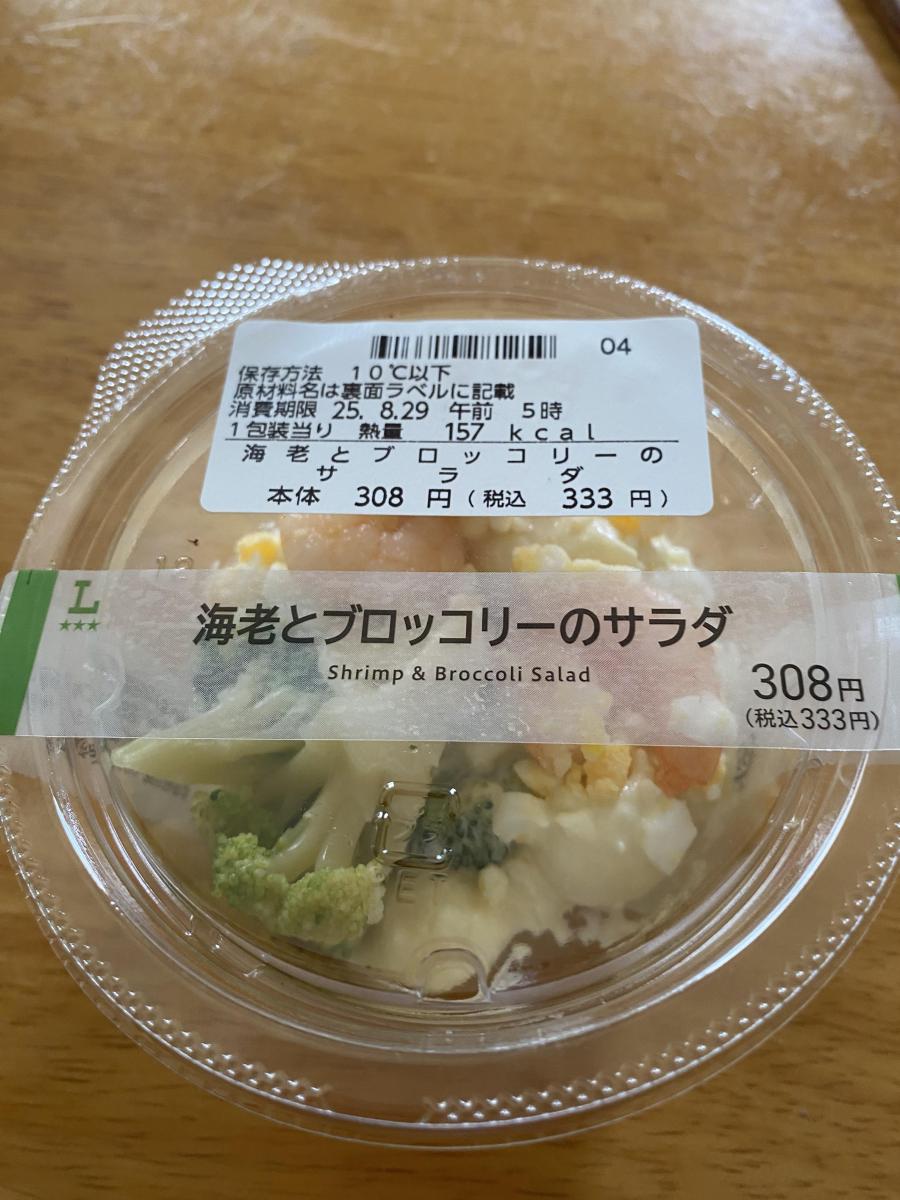 海老の食感がプリっとしていて、美味しかったです。マカロニとブロッコリーと、ゆで卵のみじん切りも、入っていて、色々な具材が味わえました。マヨネーズとの絡みもよく、立派なおかずサラダで、少量ですが、お腹いっぱいになりました。