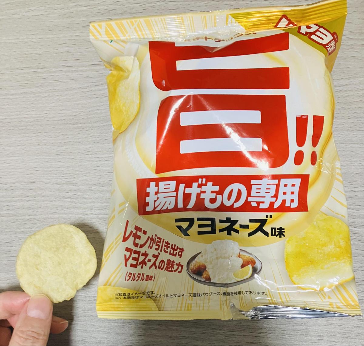 マヨネーズとタルタルソースを合わせた味のポテトチップス。でも味は濃くなく、サクサクとした食感も相まってあっという間に食べ終わりました。旨のパッケージ通り美味しかったです。