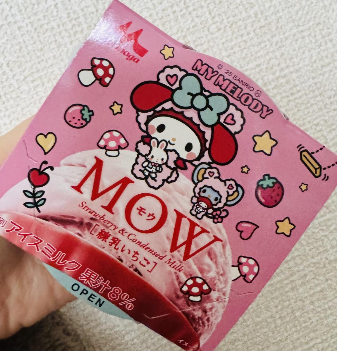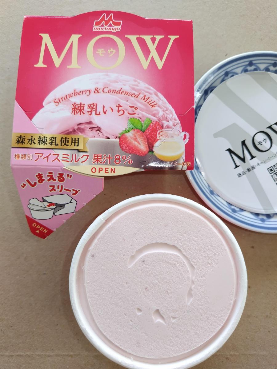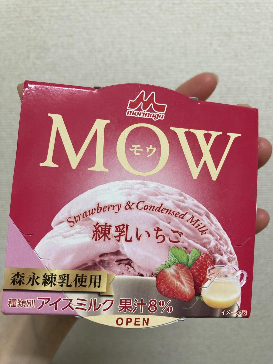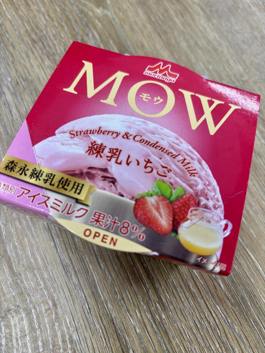 森永のMOWアイスはミルク感が強くて好きなアイスです。いちごの香りがいいです。フレッシュいちごというよりは美味しいいちごジャムの味という感じですが甘くて美味しいです。