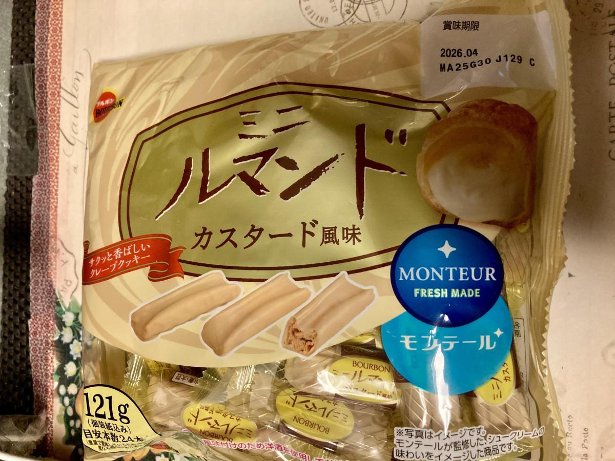 洋菓子のモンテールとコラボした変わり種のルマンドです。サクサクした食感はそのままですが、カスタード風味のクリームがほどよい甘さで美味しいです。