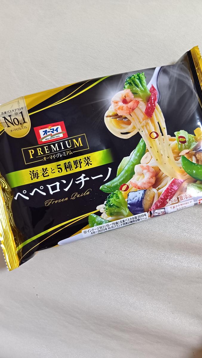 冷凍食品とは思えないくらいに、本格的な味わいです。にんにくがきいていて、たっぷりの野菜と贅沢なエビが入っていて、まさにお店のようなプレミアムなパスタです。