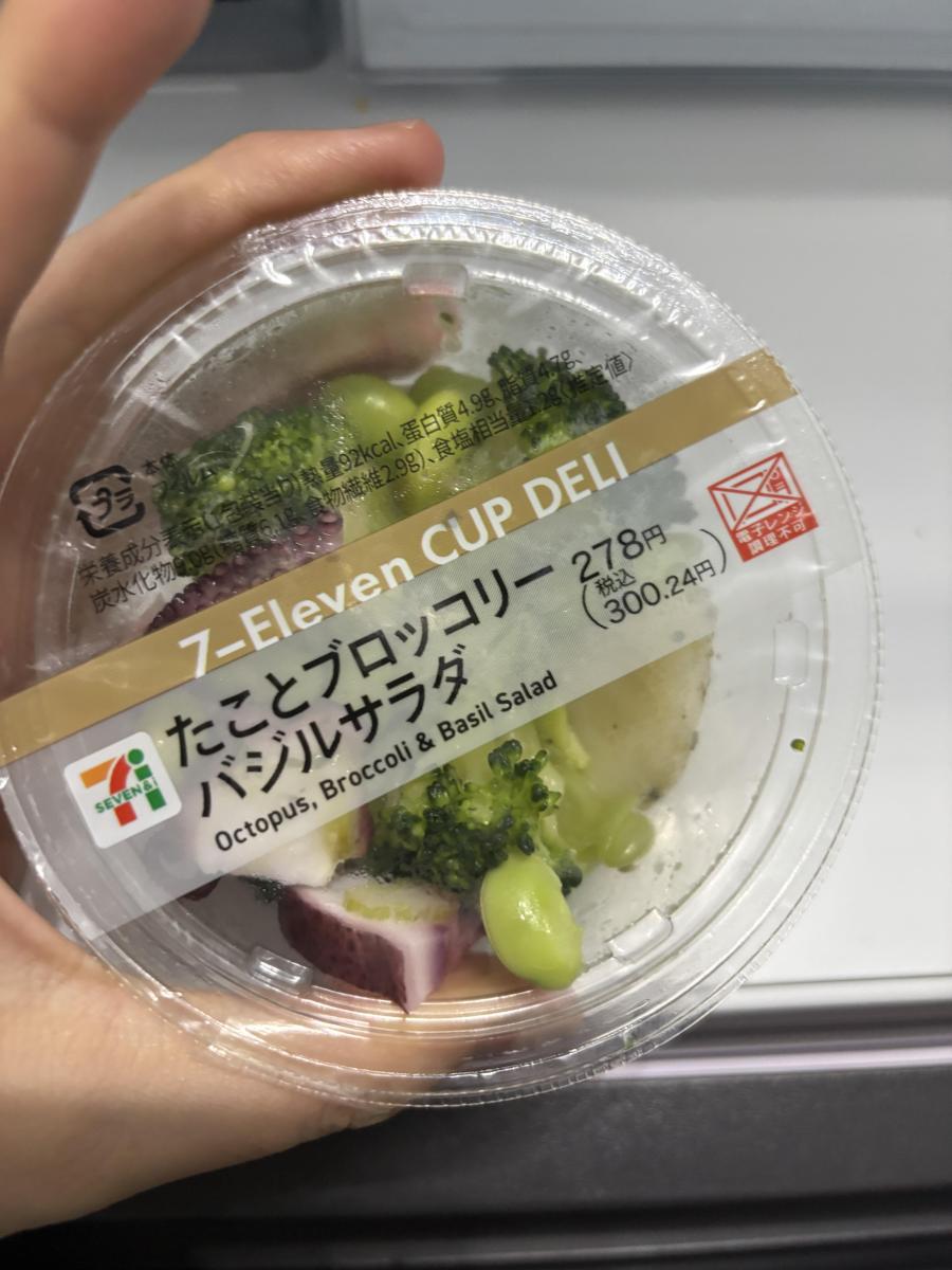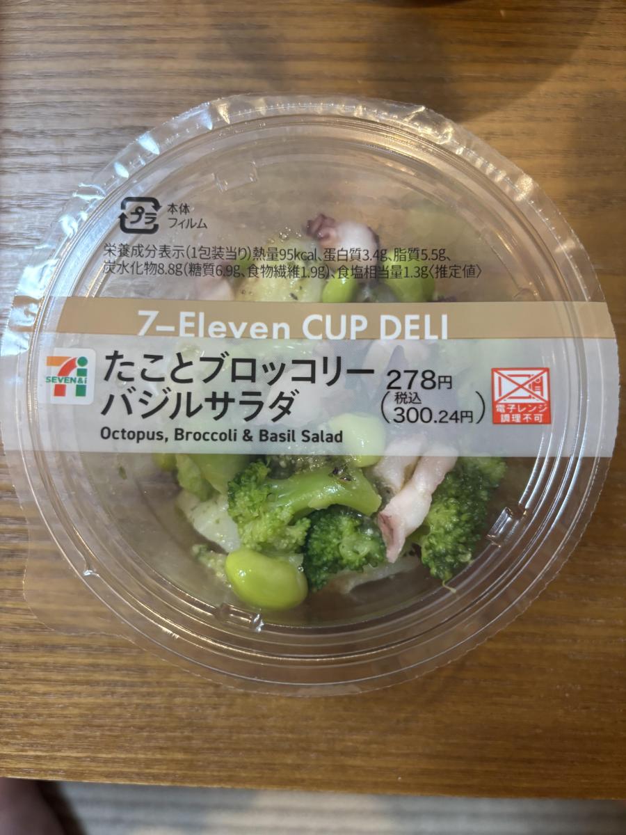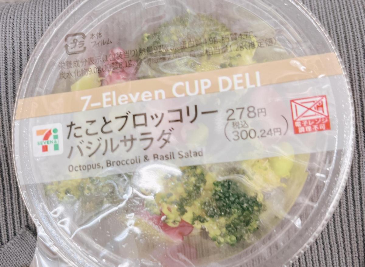 以前から定期的に購入しているセブンのお惣菜、たことブロッコリーのバジルサラダです。